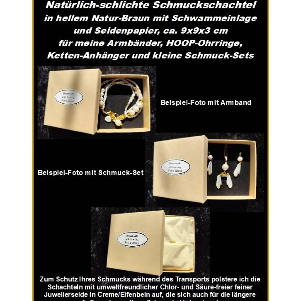 Einige Schmuckstücke versende ich standardmäßig (ohne Aufpreis) nur in diesen Schmuckschachteln – ein entsprechender Hinweis ist in den betreffenden Angeboten enthalten.