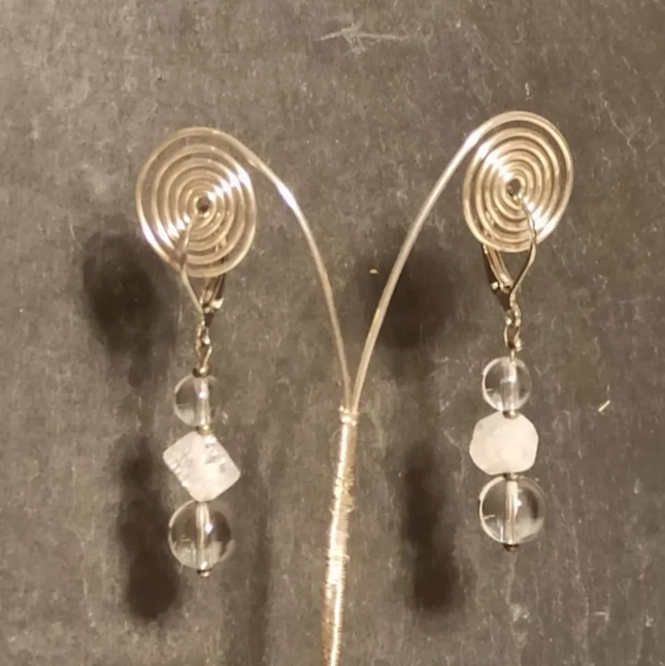 Ohrringe: gecrashte Bergkristallwürfel, klare Berkristall-Perlen