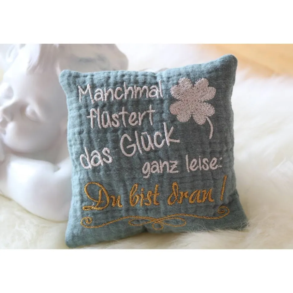 Bestickung: „Manchmal flüstert das Glück ganz leise: Du bist dran“