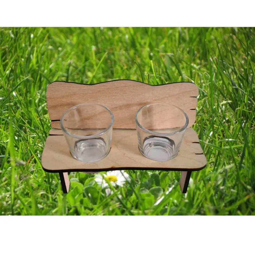 Die Schnapsbank kann wahlweise in Birkensperr- Eichen- oder Nussbaumholz bestellt werden. Alle drei Ausführungen werden inklusive 2 Gläser geliefert.
