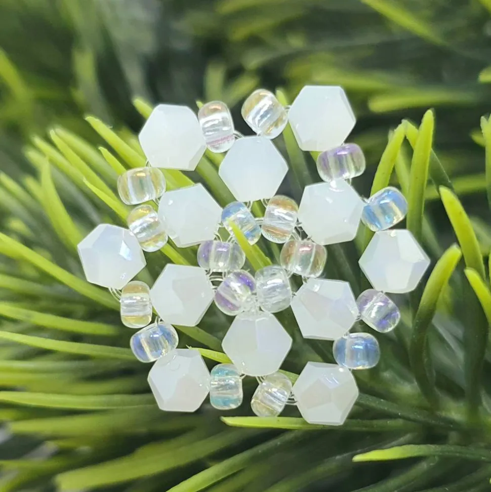 Verleihe deiner Weihnachtsdeko einen besonderen Glanz: Die drei zarten Schneeflocken bzw. Eiskristalle aus funkelnden Kristallglasperlen und hochwertigen Rocailles sind liebevoll auf Nylonfaden gefädelt. Mit einer Größe von ca. 2,5 cm von Spitze zu Spitze eignen sie sich perfekt für vielfältige Deko-Ideen.