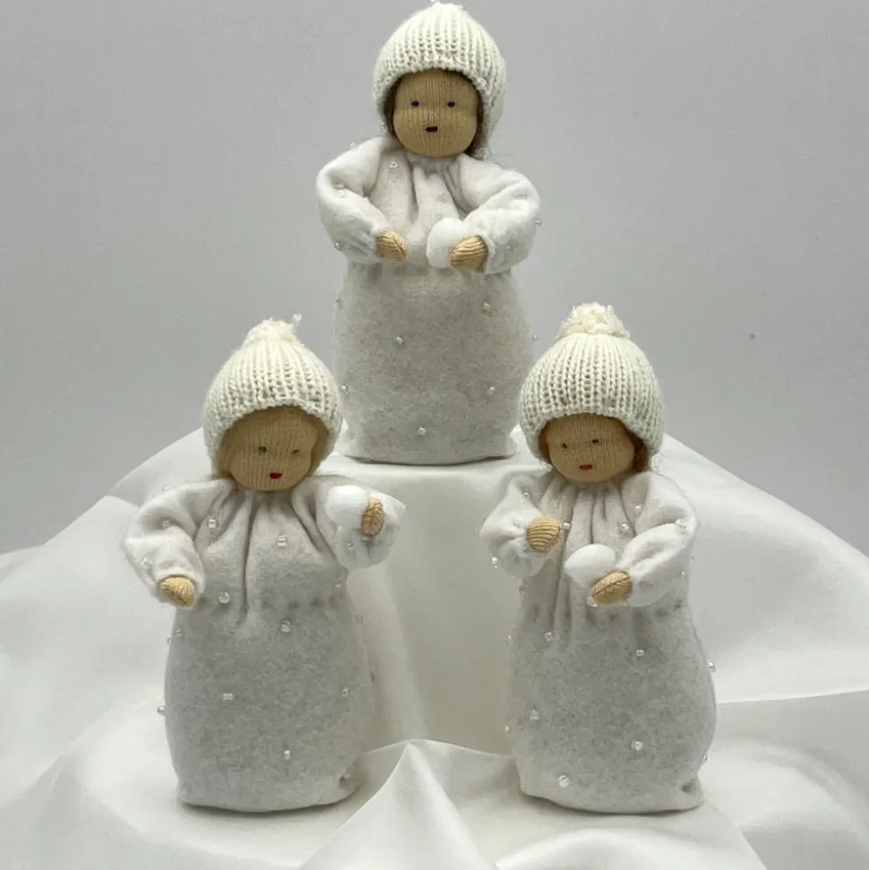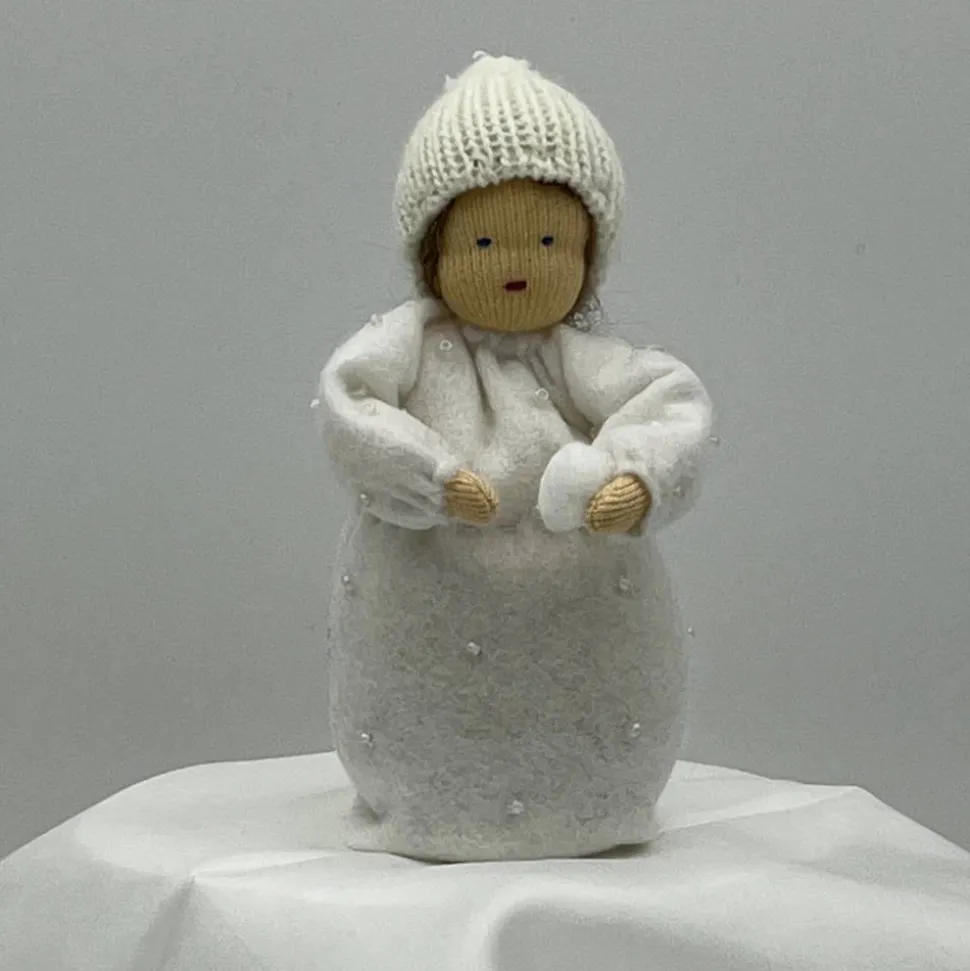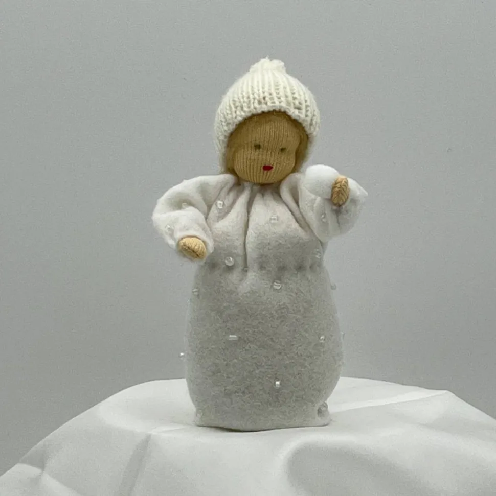 Das Püppchen ist unten geschlossen und für einen guten Stand unten mit feinem Dekokies und der Rest mit reiner Schurwolle gefüllt.