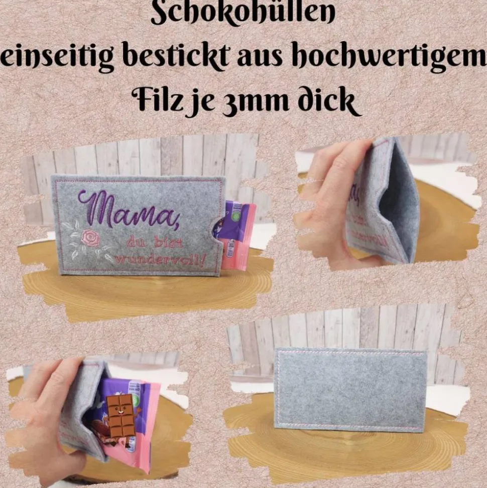 Entdecke meine handgefertigten Schokoladenhüllen aus hochwertigem Filz. Ideal als Geschenkverpackung für Geburtstage, Weihnachten oder einfach als kleines Dankeschön. Mache aus einem einfachen Schokoladengeschenk etwas Besonderes!