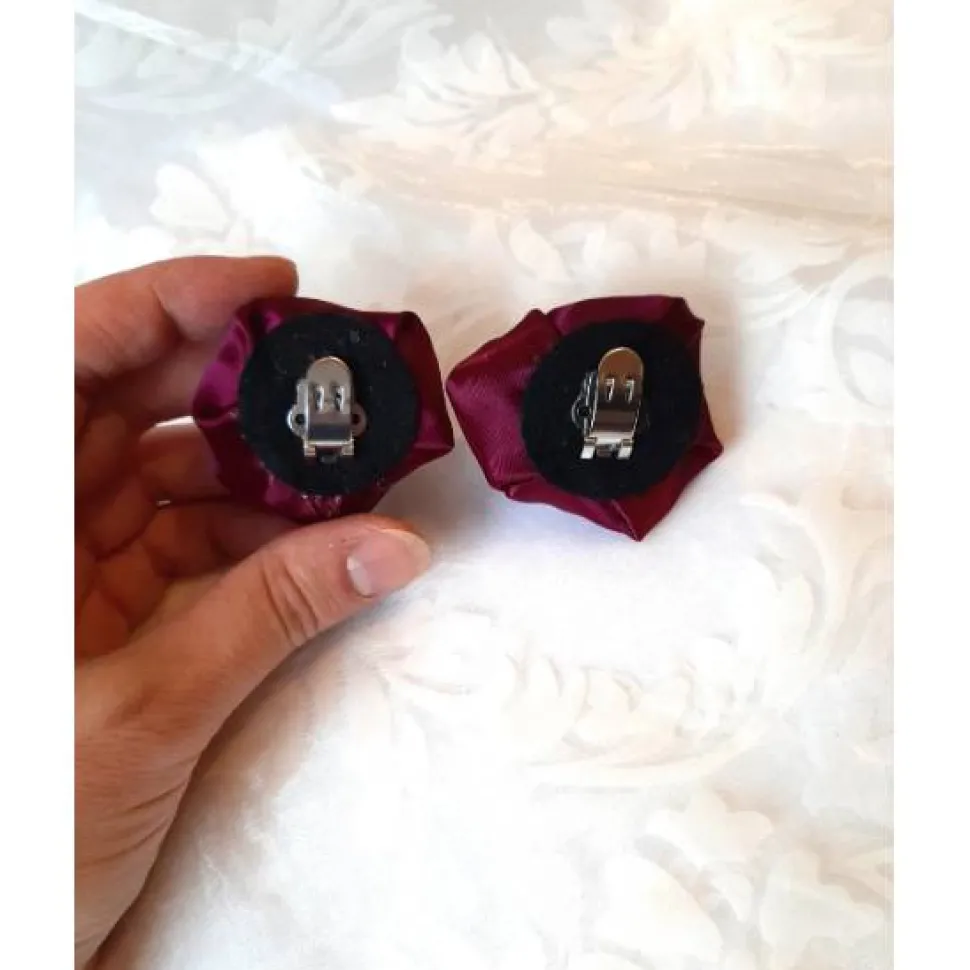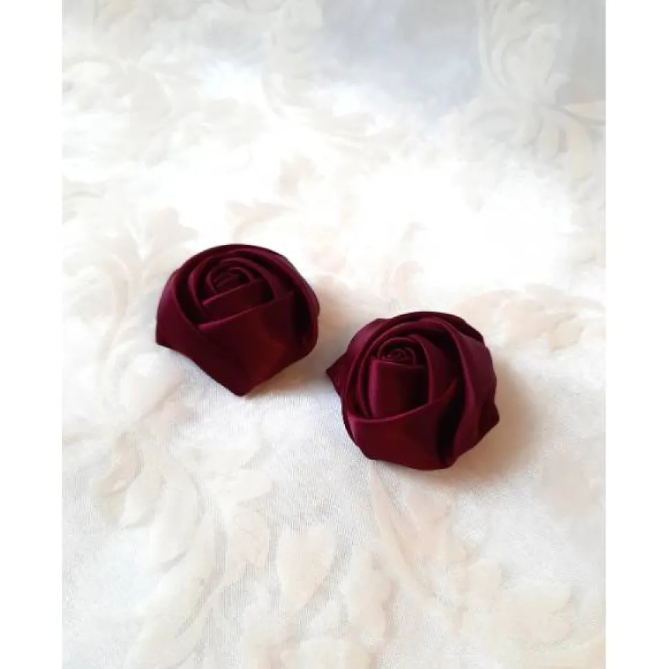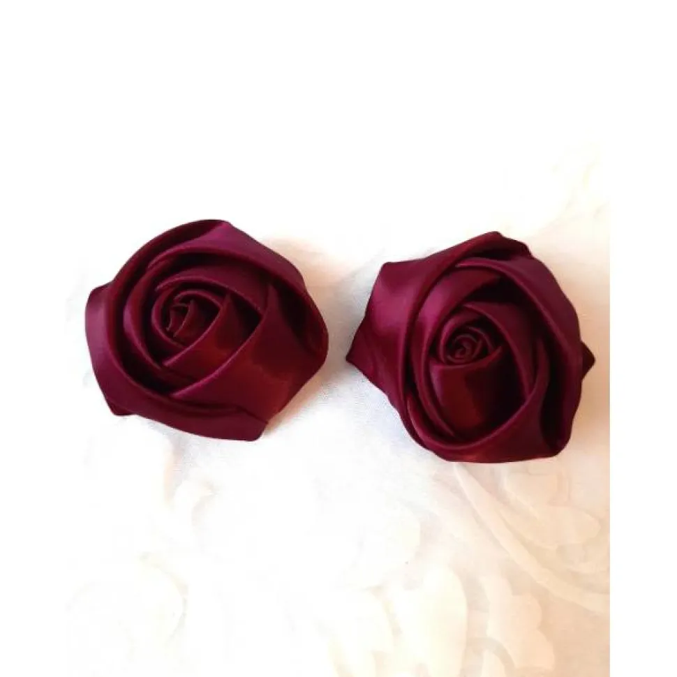 Zwei elegante Schuhclips in Form von Blüten aus schimmerndem Satin und einem Schuhclip-Verschluss an der Rückseite.