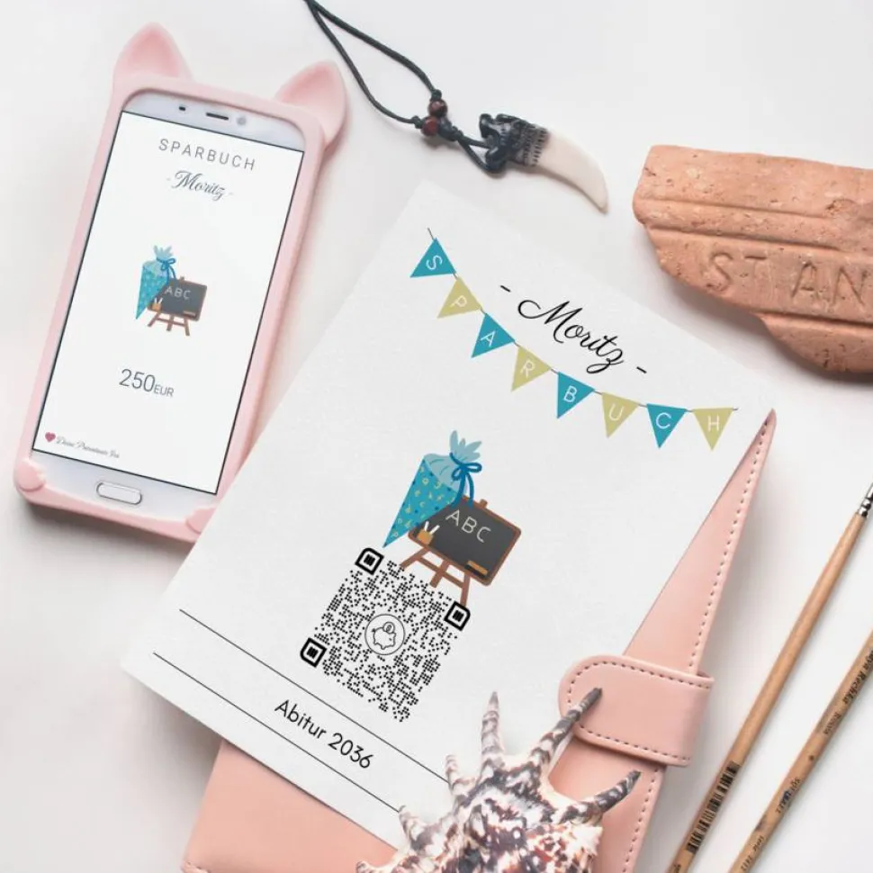 ❤️️ Suchst du noch ein ganz besonderes Geldgeschenk für dein Kind, Patenkind, Enkelkind zum Schulanfang? Dann schenke doch ein Digitales Sparbuch als Geschenkkarte.
