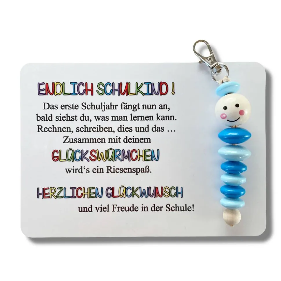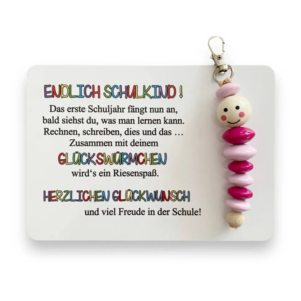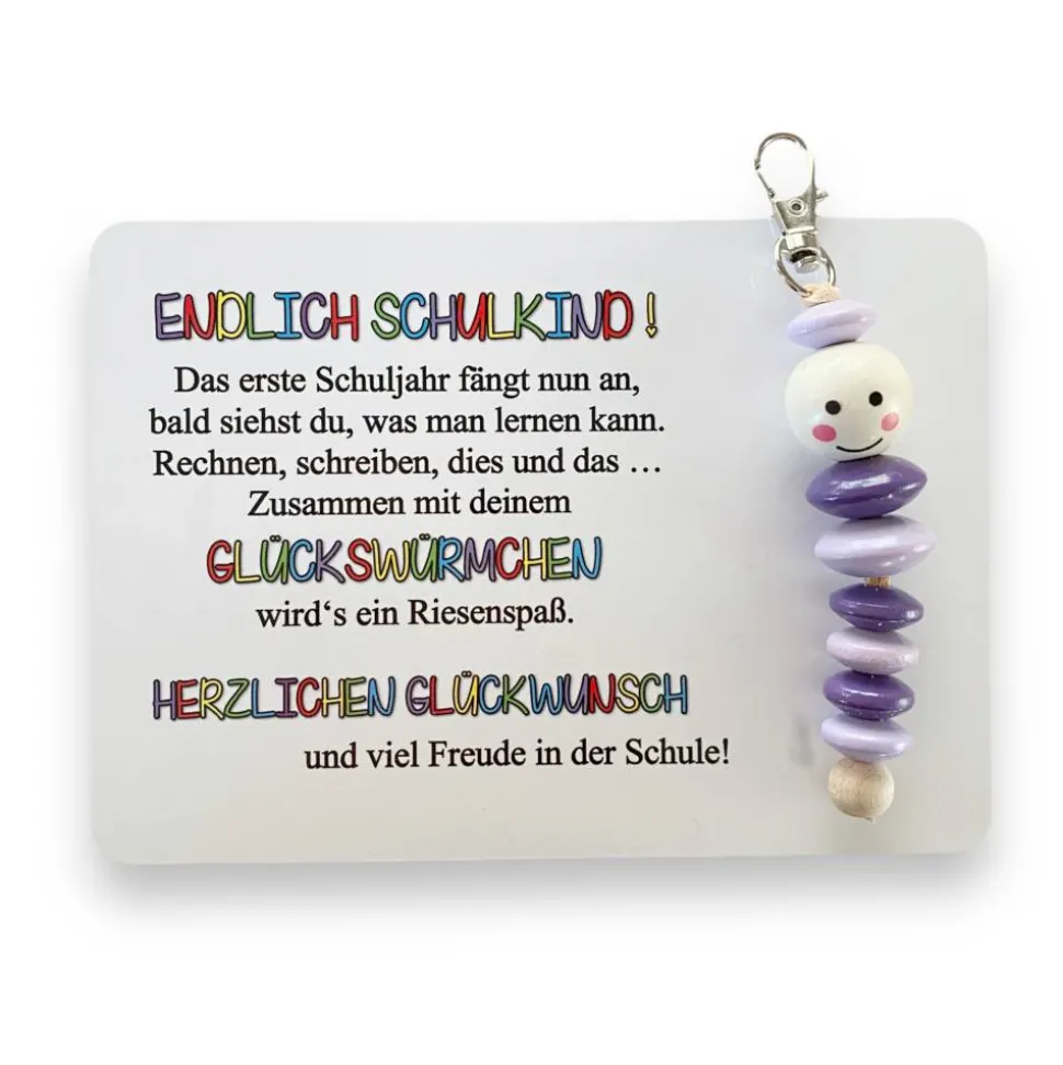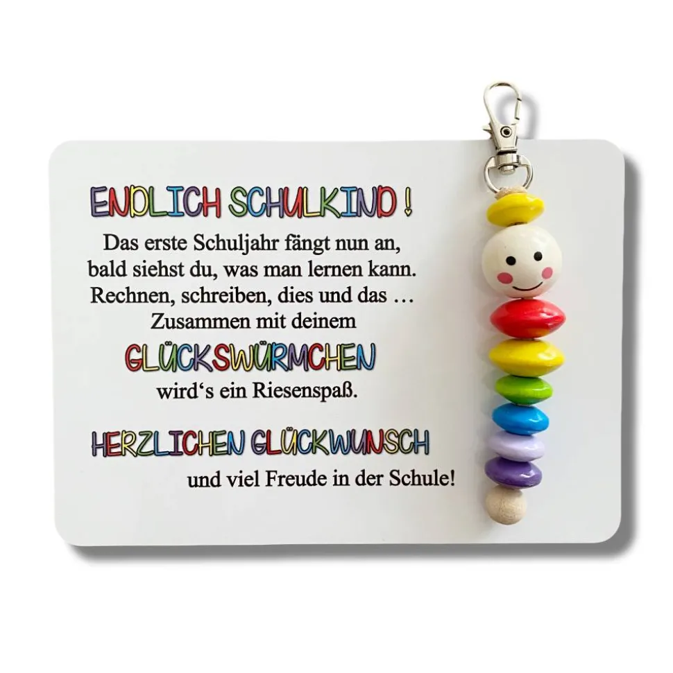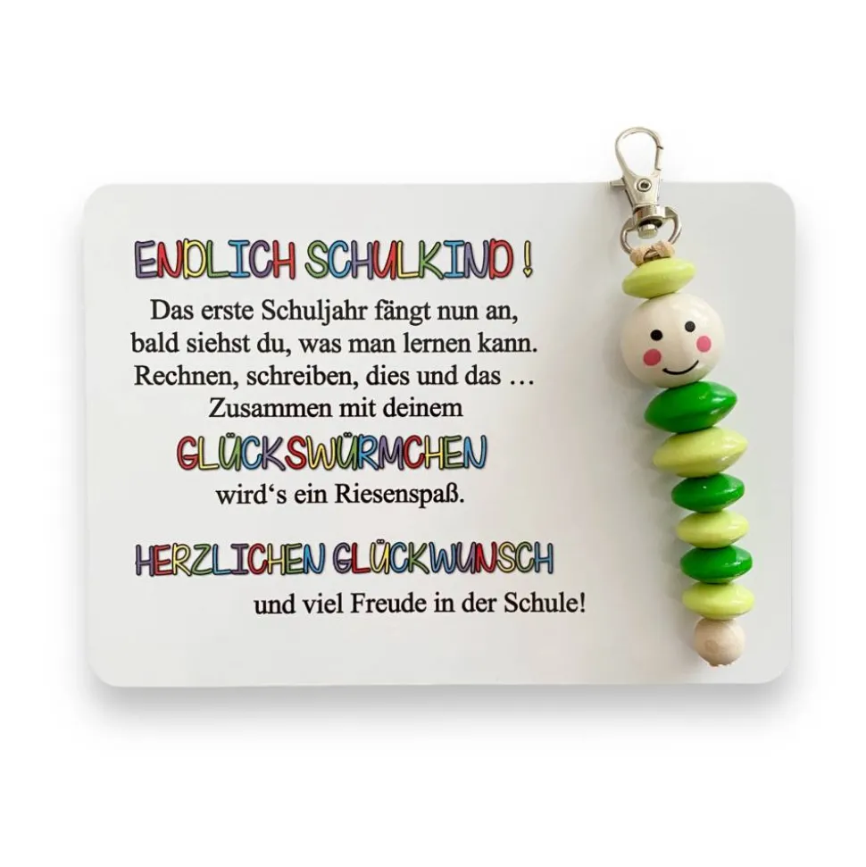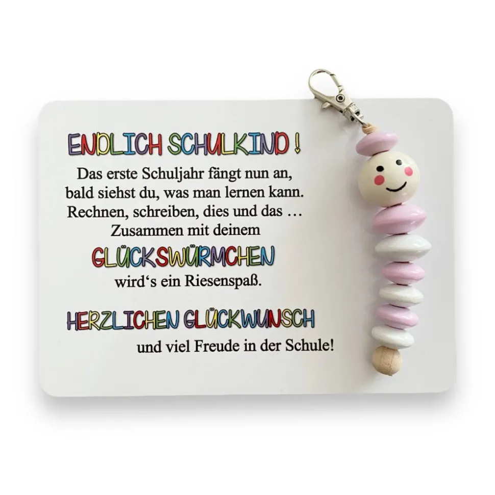 SCHULKIND 2024, Glückswürmchen, Geschenk Einschulung, Sorgenwürmchen, Ranzenbaumler, Worry worm, Mutmacher, Glücksbringe