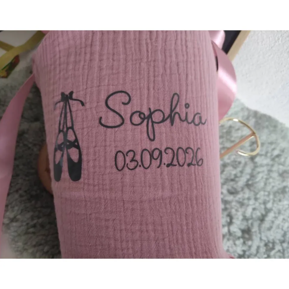 inklusive Ballerinaschuhe, Name und Datum (mit vorhandenen Folienfarben, empfohlen: grau, silber oder gold)