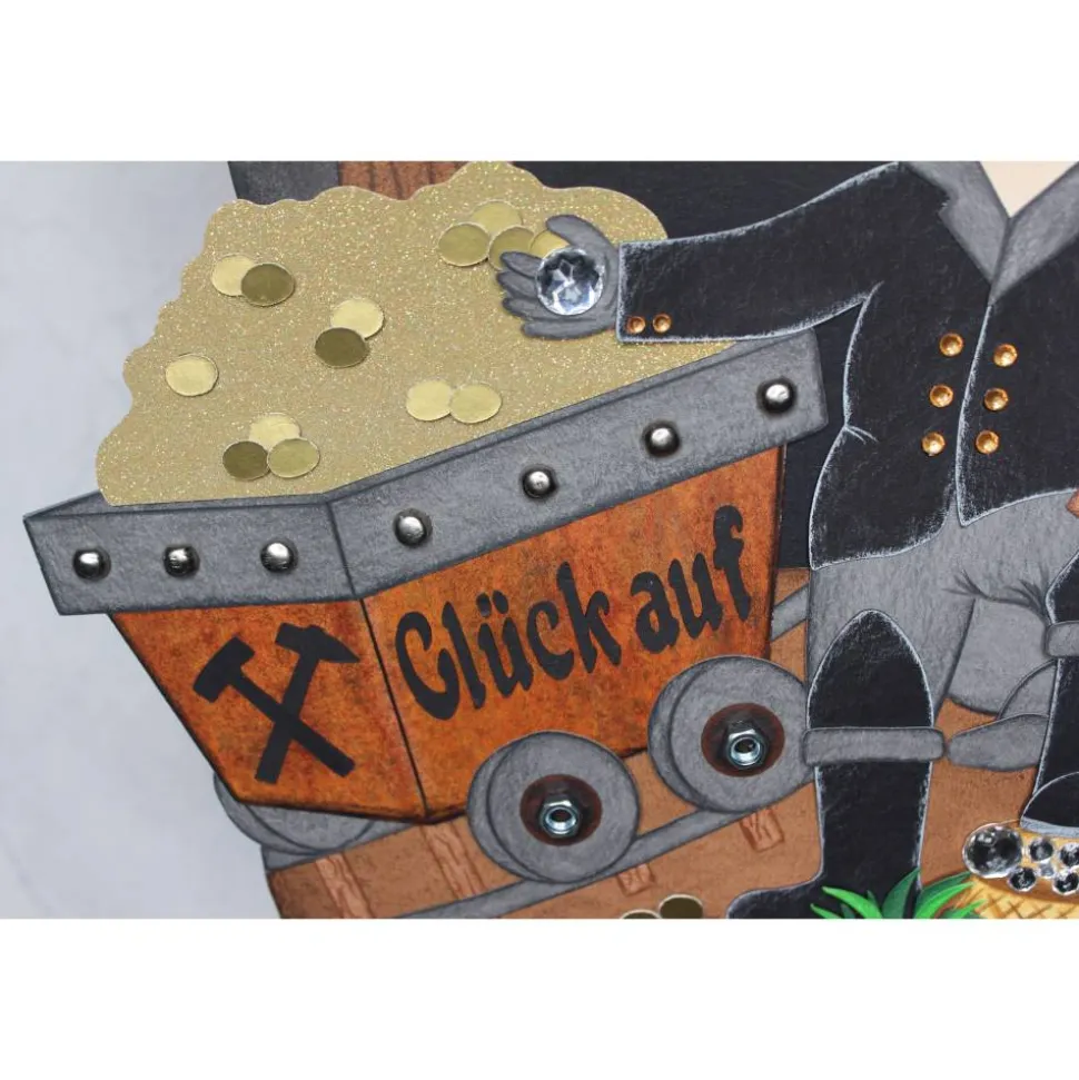 Um dem Motiv auf der Schultüte mehr Stabilität zu geben, ist der Bergstollen, der Boden und die Lore doppelt gefertigt.