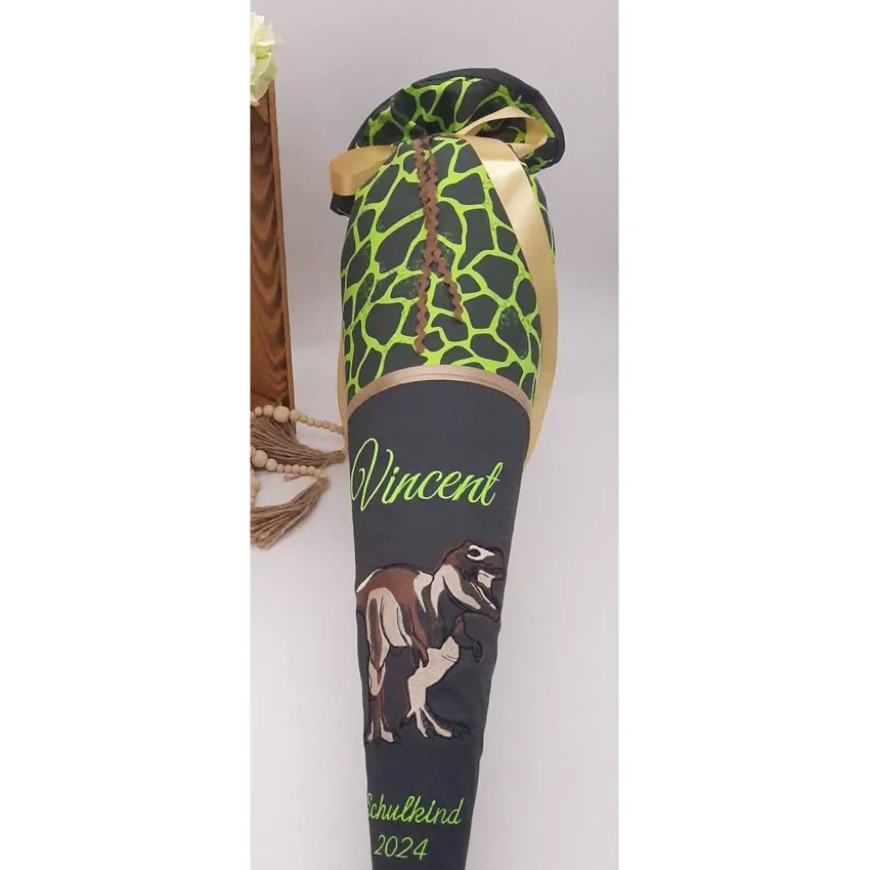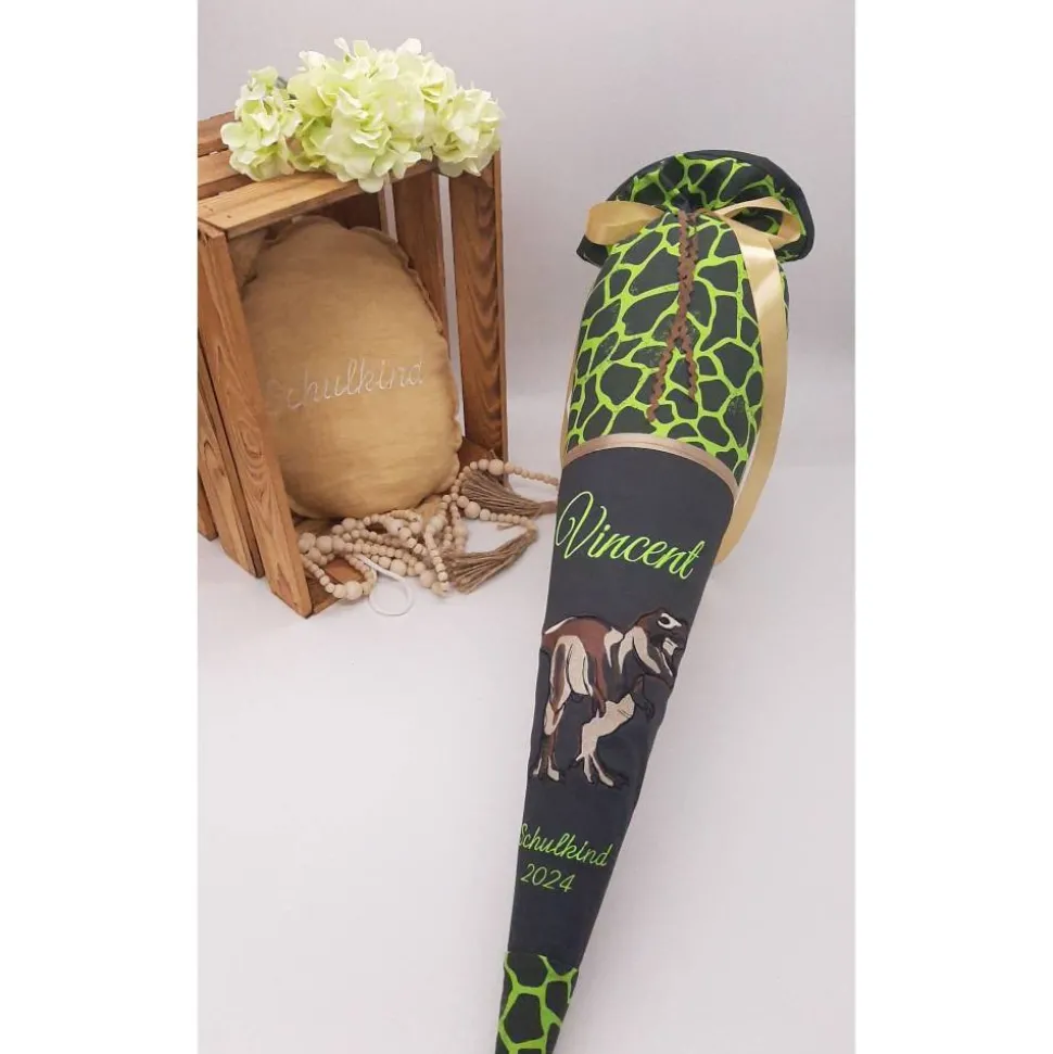 Die Schultüte wird mit dem Namen des Kindes und z.B. Schulkind 202* bestickt.