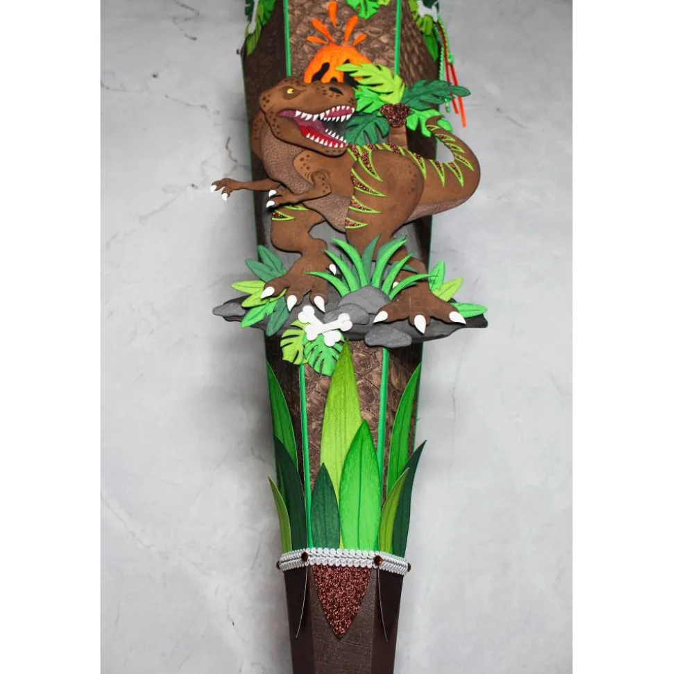 Der erste Schultag ist ein einzigartiger Moment und so einzigartig präsentiert sich die handgefertigte Dinosaurier Schultüte, als eindrucksvolles Highlight, für einen unvergesslichen Schulanfang.