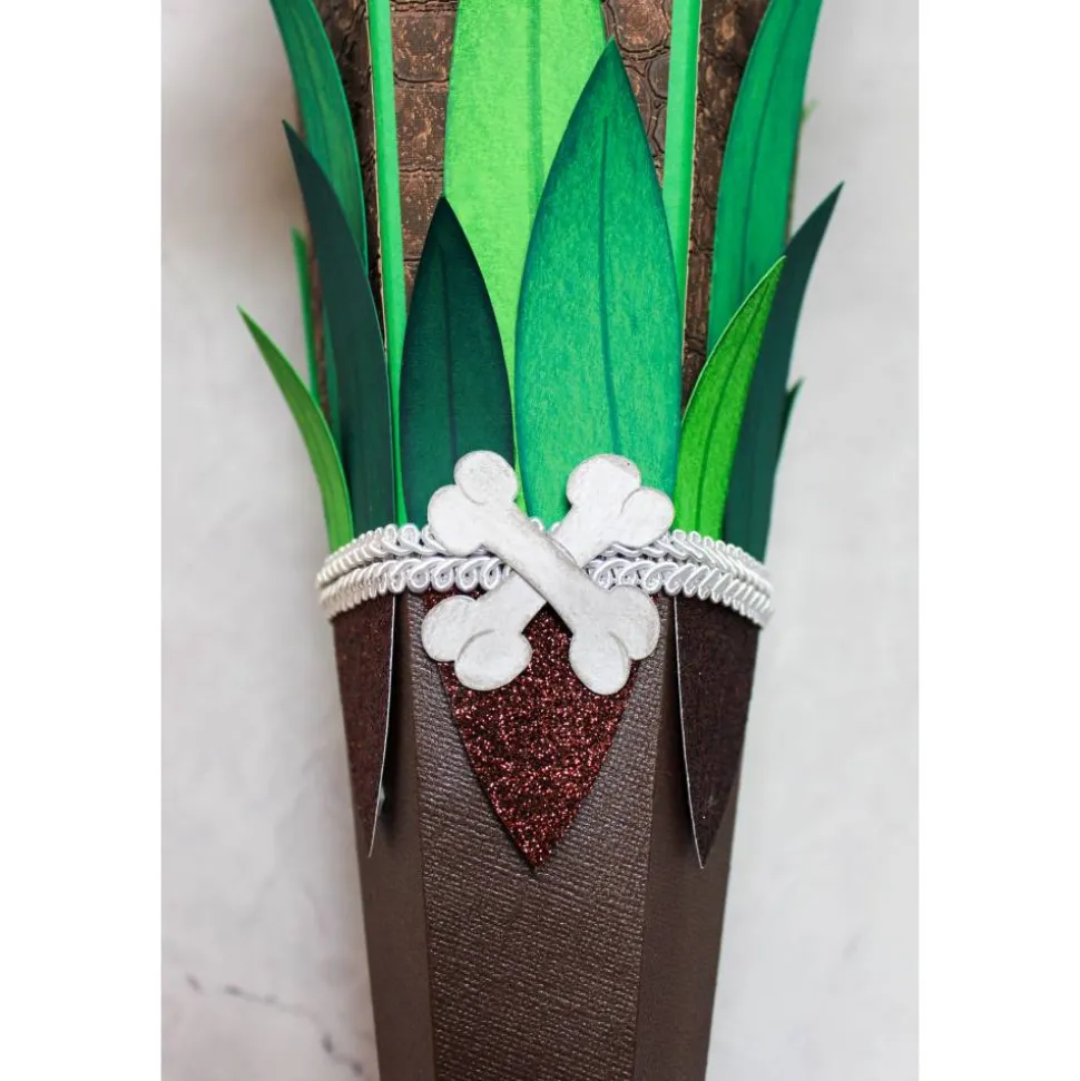 Mehrlagig gearbeitete Elemente verleihen dem Motiv zusätzliche Tiefe, Stabilität und eine schöne 3D-Optik. Zahlreiche tropische Blätter, Knochen und Skelettköpfe schmücken den Schultütenrohling und schaffen ein harmonisches, lebendiges Gesamtbild.