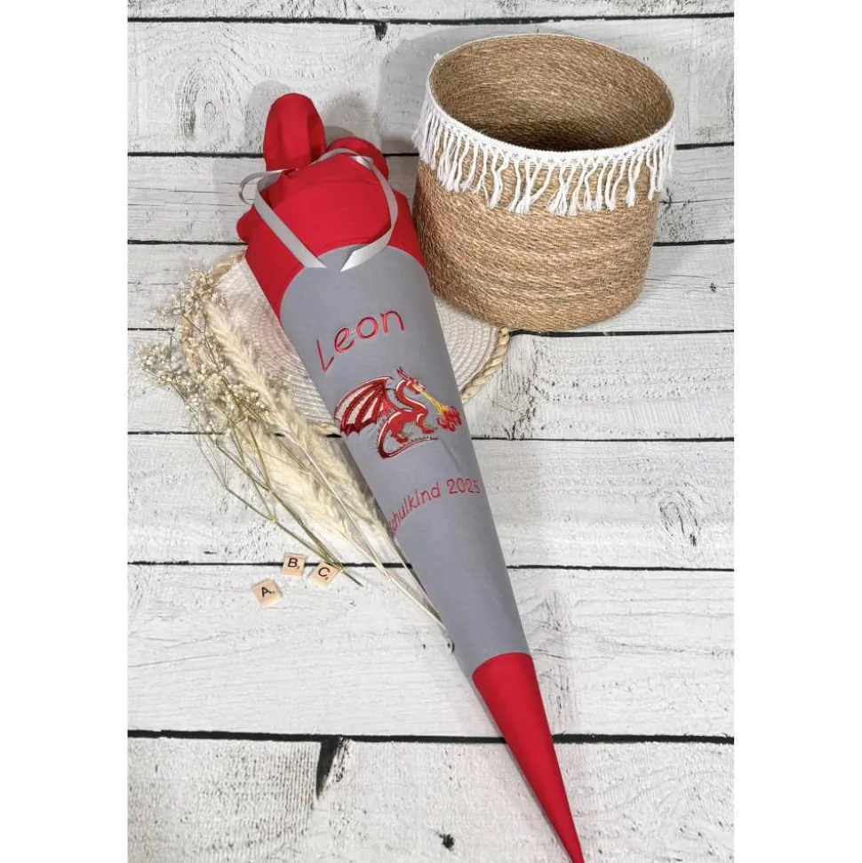 Schultüte Drache Feuerdrache aus Stoff 70 cm personalisiert
