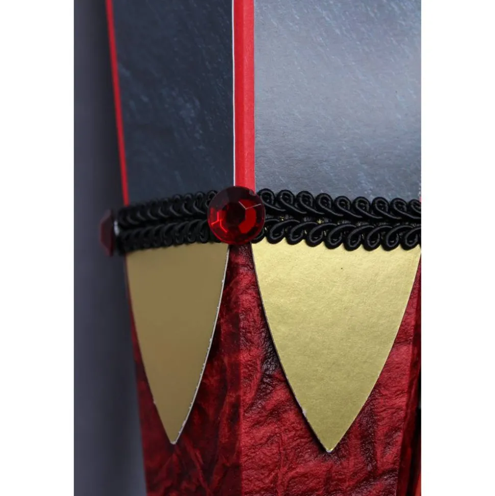 Für einen sauberen Übergang sorgt eine schwarze Bordüre, die mit roten Schmucksteinen verziert ist. Die Manschette ist aus schwarzem Krepppapier, gelbe, hellorangene und rote Krepppapierflammen schlängeln sich empor.