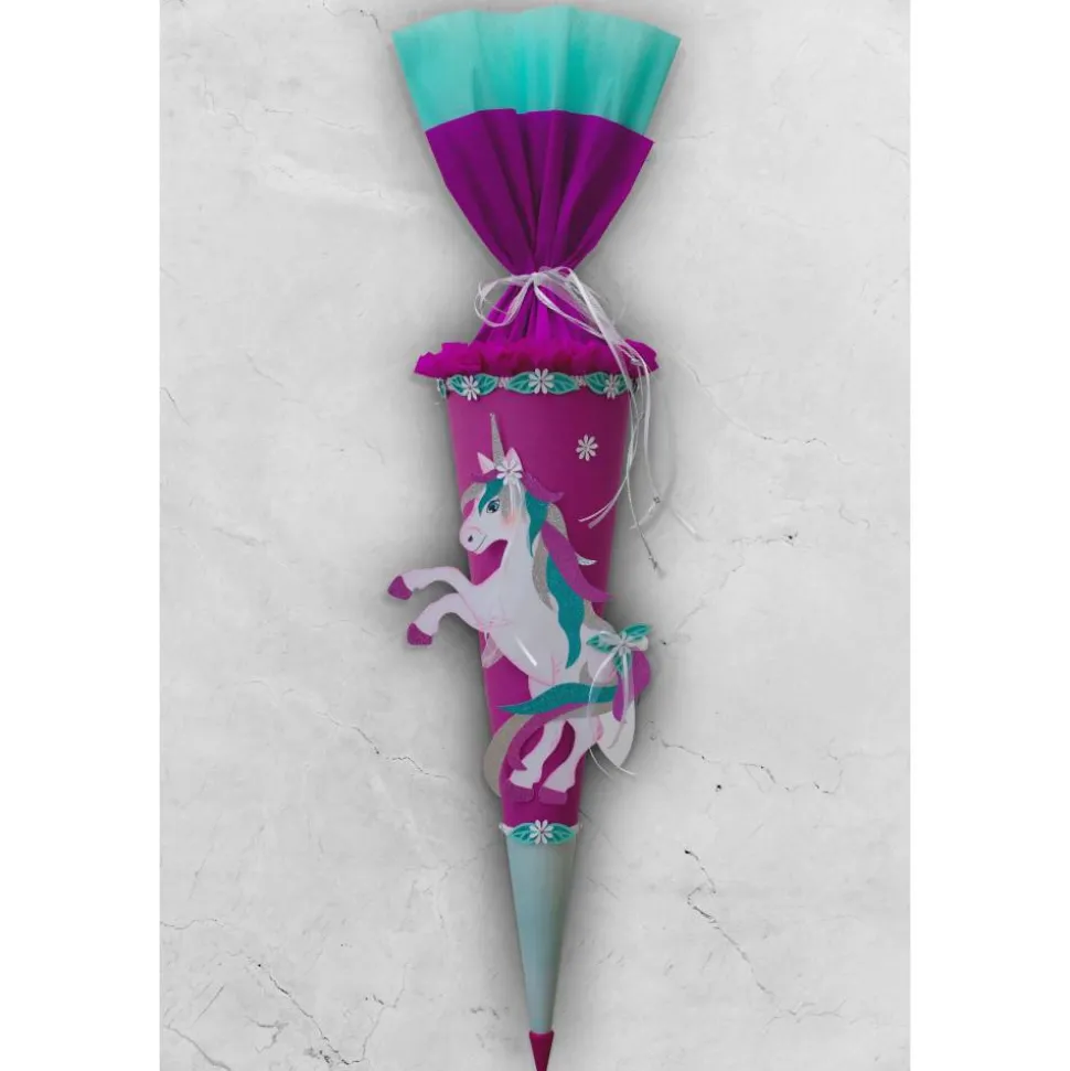 Je nach Bestand können kleine Details wie Schmucksteine, Schleifenband, Kordeln, Glitterkarton usw.in Art und Farbe variieren, aber immer passend zur Schultüte.