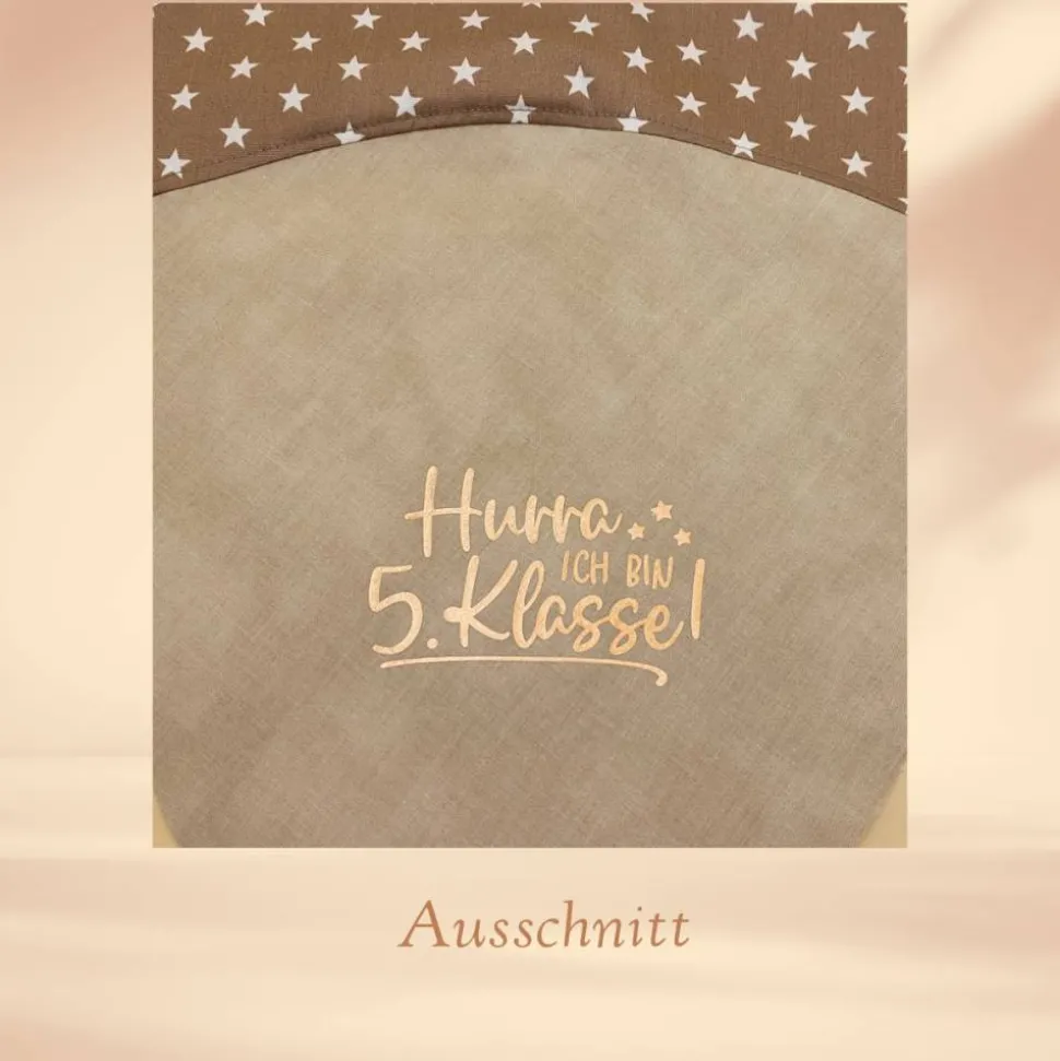 ➡ Standardmäßig wird angedruckt: „Hurra ich bin 5. Klasse“ (Design vom Motiv stammt von „SteffisKreativkiste“)