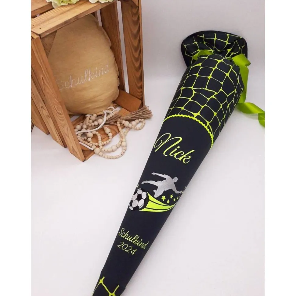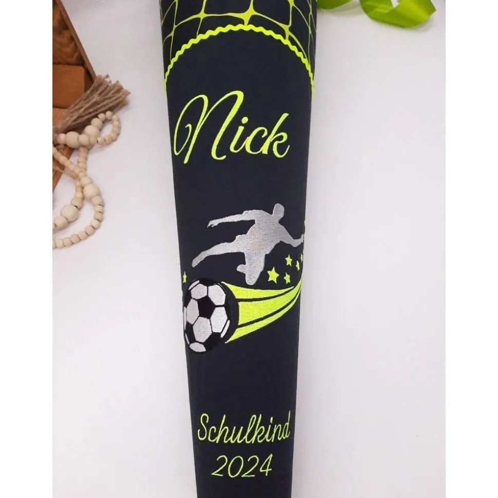 Die Schultüte wird mit dem Namen des Kindes und z.B. Schulkind 202* bestickt.