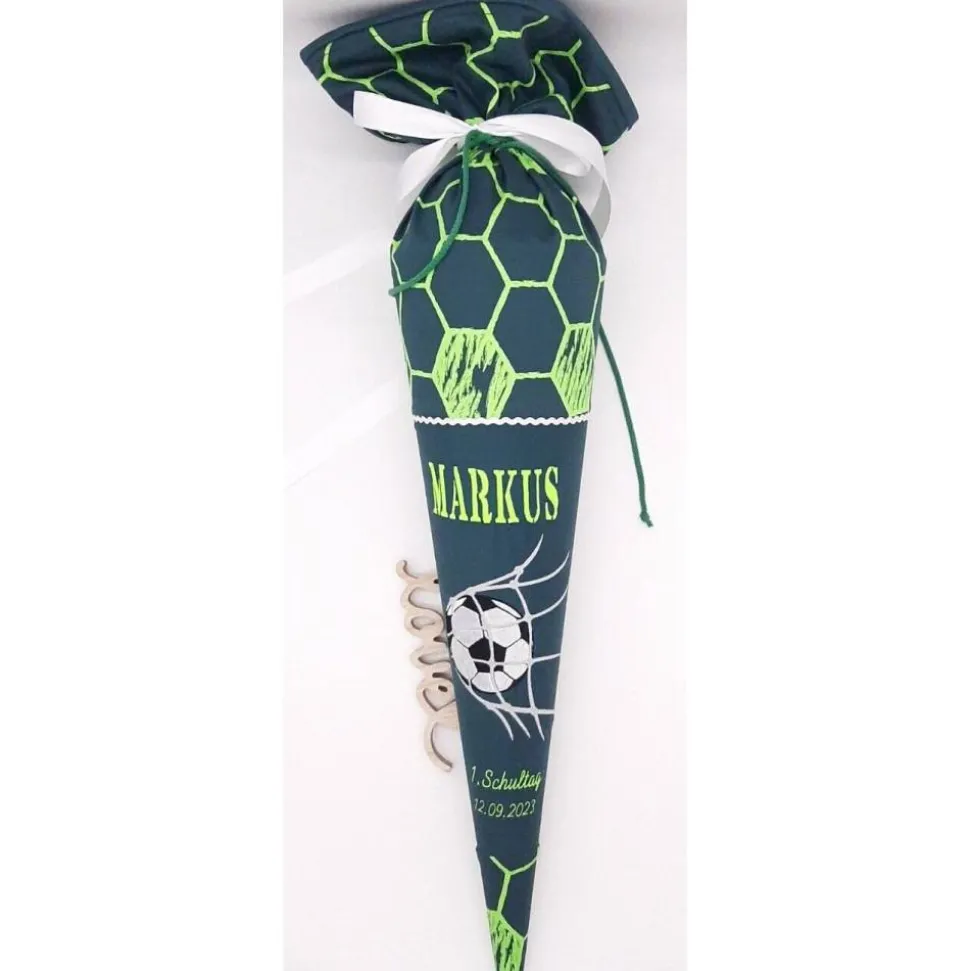 Die Schultüte wird mit dem Namen des Kindes und z.B. Schulkind 202* bestickt.