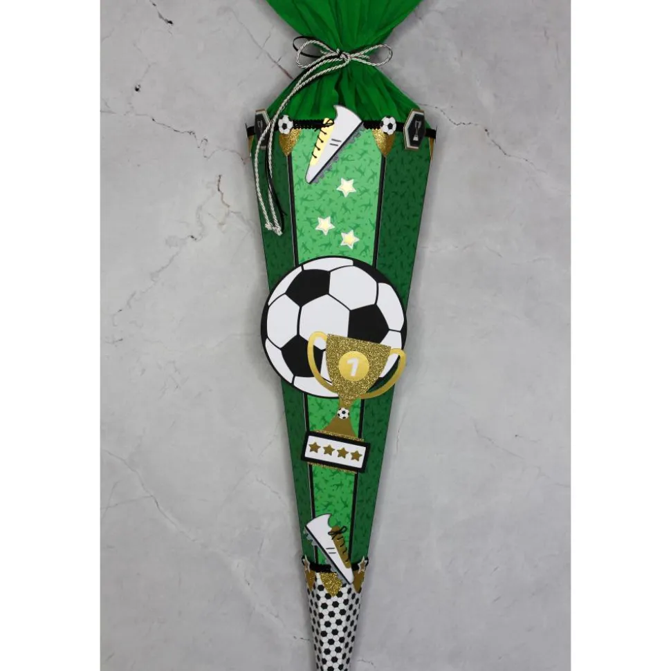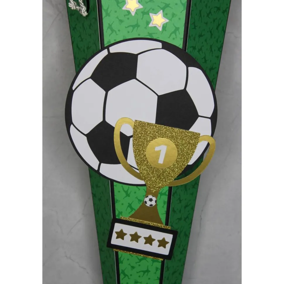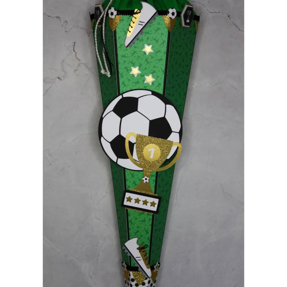 Gefertigt ist sie auf einem 6-eckigen, stabile Schultütenrohling der Firma Roth und hat eine Höhe von 85 cm. Für kleinen Fußball-Fans ist die Schultüte bestimmt ein Highlight an Ihrem ersten Schultag!