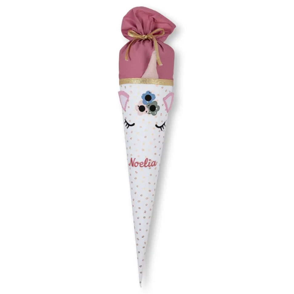 Handgefertigte Schultüte aus Stoff . Detailverliebt bestickt mit Pferd und Pompoms.