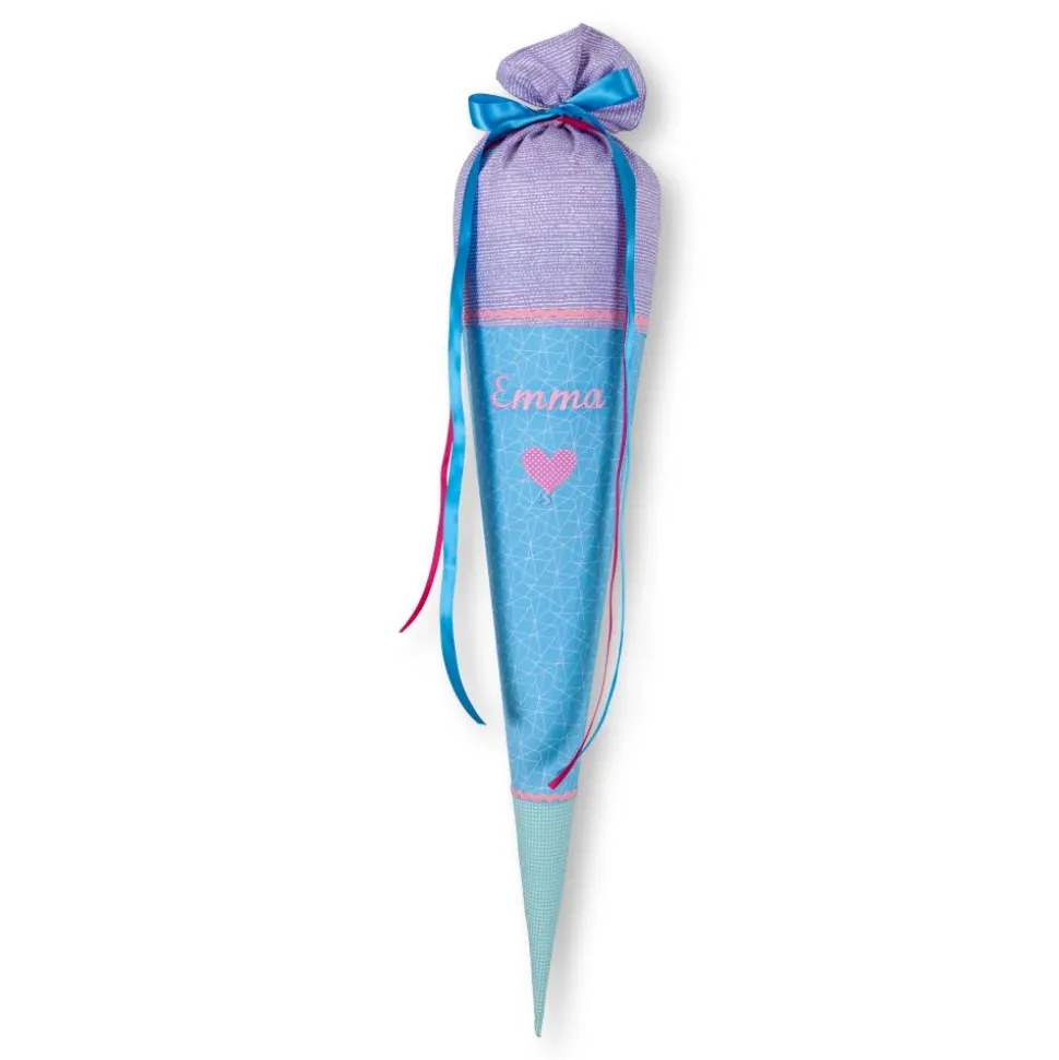 Handgefertigte Schultüte aus Stoff in den tollen Farben Flieder, Hellblau und Mint.