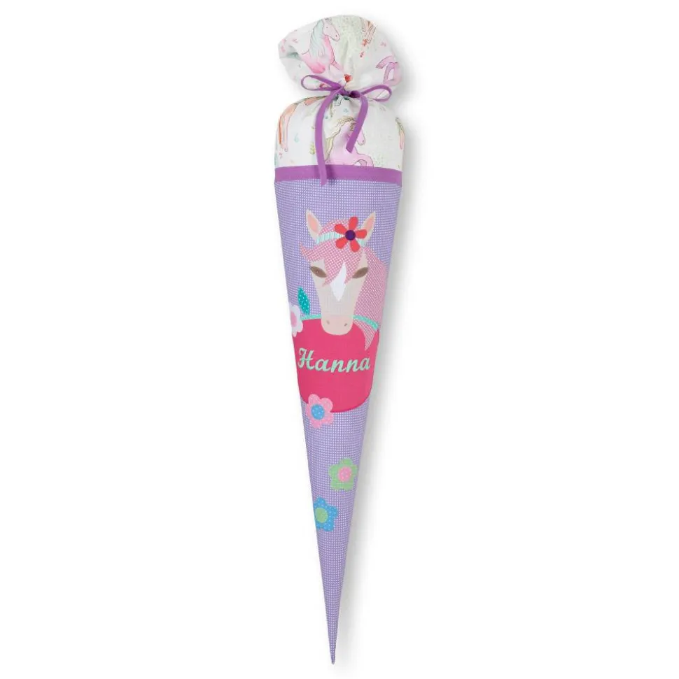 Handgefertigte Schultüte aus Stoff . Detailverliebt bestickt mit Pferd und Blumen.