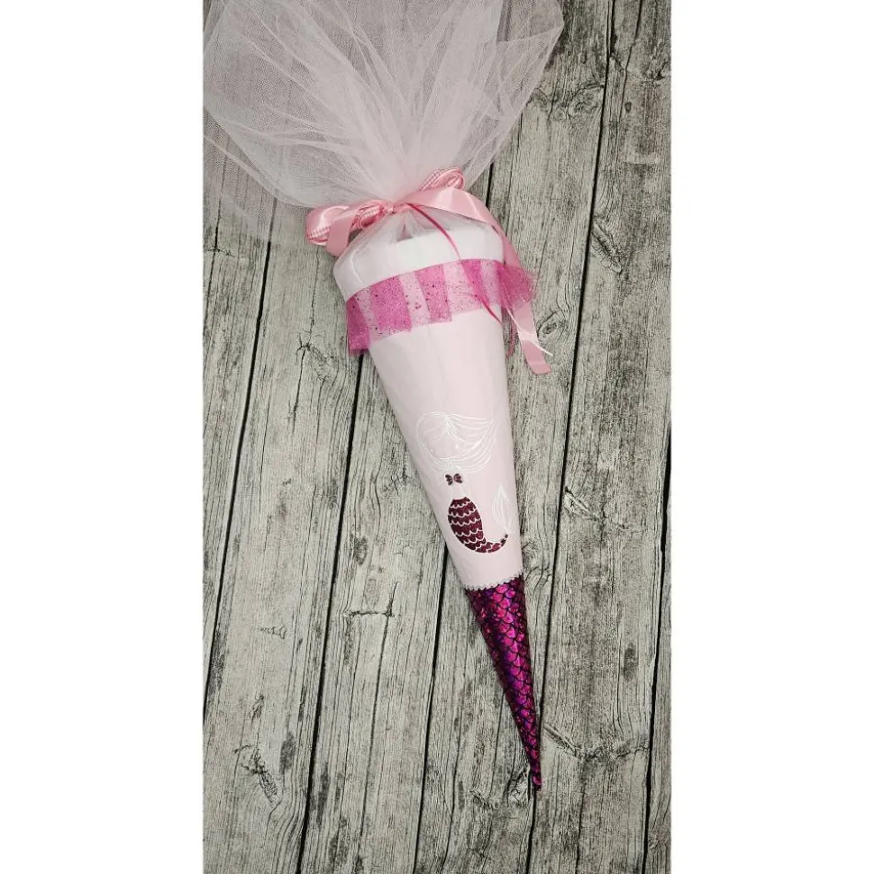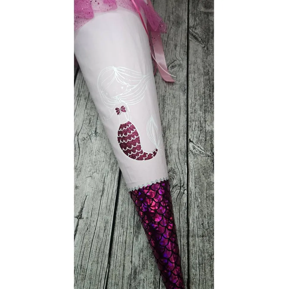 Mit dieser Schultüte aus Stoff schenkst du nicht nur ein schönes Accessoire für den Schulanfang, sondern auch ein nachhaltiges und langlebiges Erinnerungsstück. Der Name des Schulkindes darf natürlich nicht fehlen, dieser wird über der Meerjungfrau gedruckt