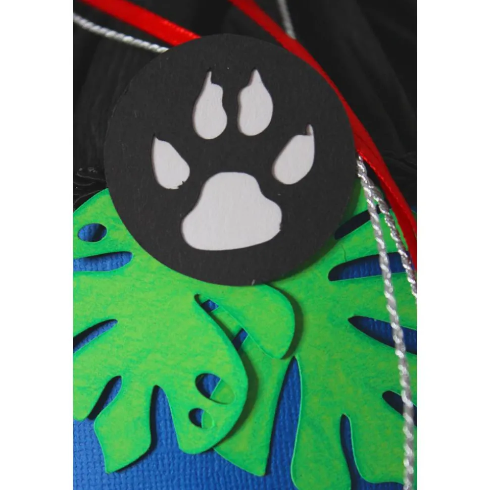 Für einen sauberen Übergang sorgt eine schwarze Bordüre. Um den Manschettenrand reihen sich tropische Blätter und Ornamente mit Tatzen aneinander, diese spiegeln sich and der Spitze wieder.