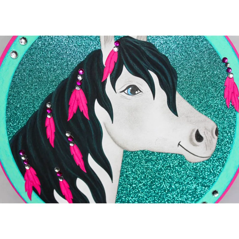 Ein weiteres Highlight ist der glitzernde Traumfänger über dem Pferdekopf, der sich auch auf der Rückseite etwas kleiner wiederfindet.