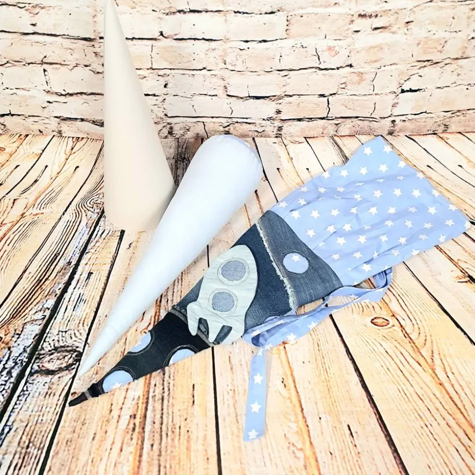 Inkl. 50 cm Rohling aus Pappe für Stabilität und Inlett. So kann man die Schultüte in ein Kissen verwandeln. Karton raus, Inlett rein, fertig!