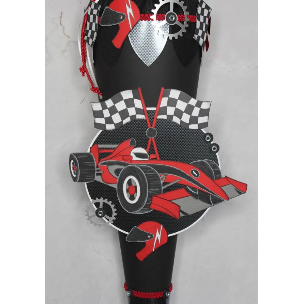 Für alle kleinen Fans des Motorsports, ist das Motiv „Rennwagen“ auf einer Schultüte gar nicht mehr wegzudenken. Daher habe ich Euch den Rennwagen „KA 1“ sehr detailliert entworfen.