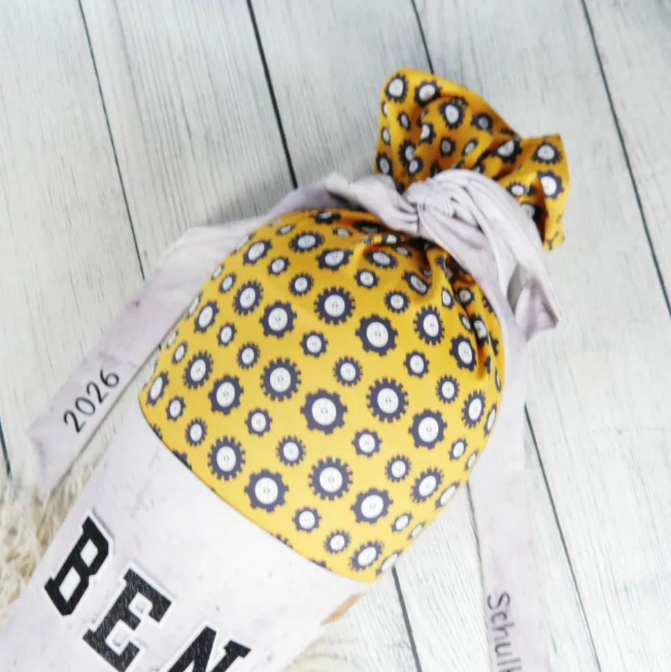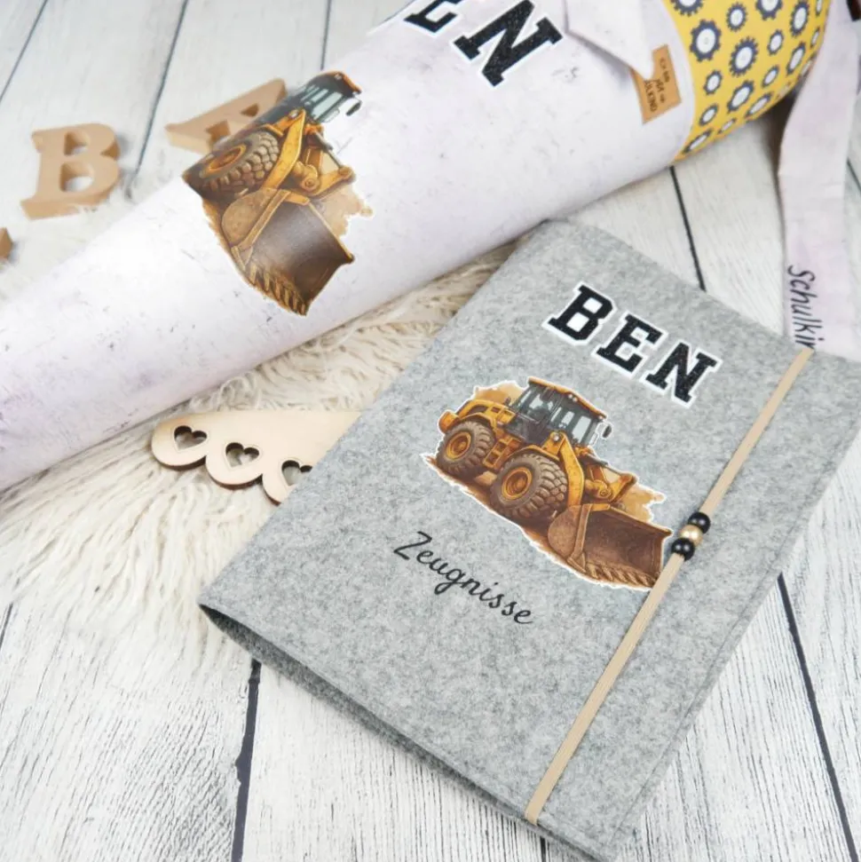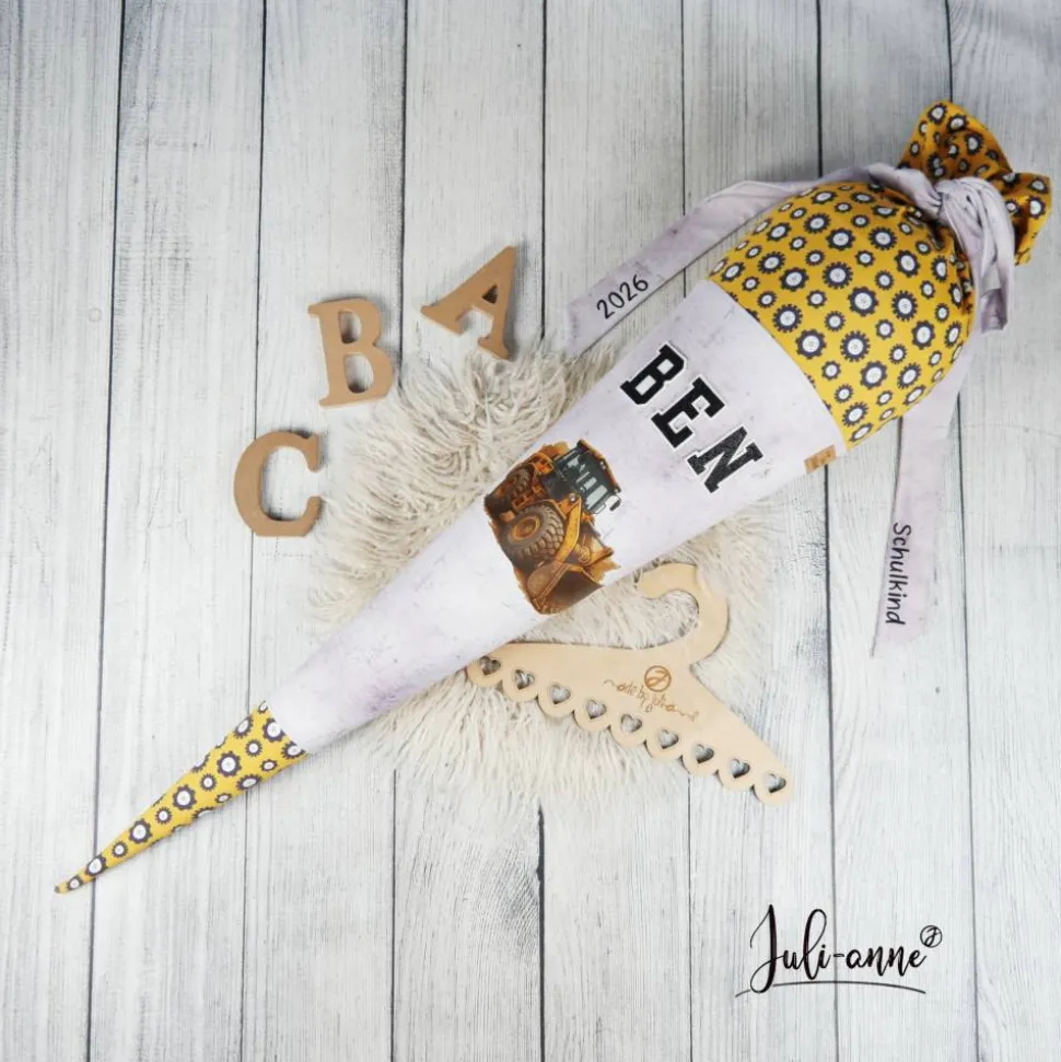 Schultüte Stoff Bulldozer Bagger Grau Gelb 70cm 85cm   *personalisierbar und mit Kisseninlet