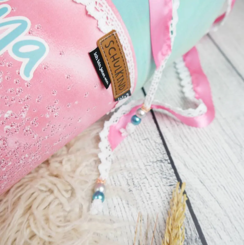 Schultüte Stoff Dachs Türkis Rosa Pink  mit Tüll 70cm 85cm   *personalisierbar und mit Kisseninlet