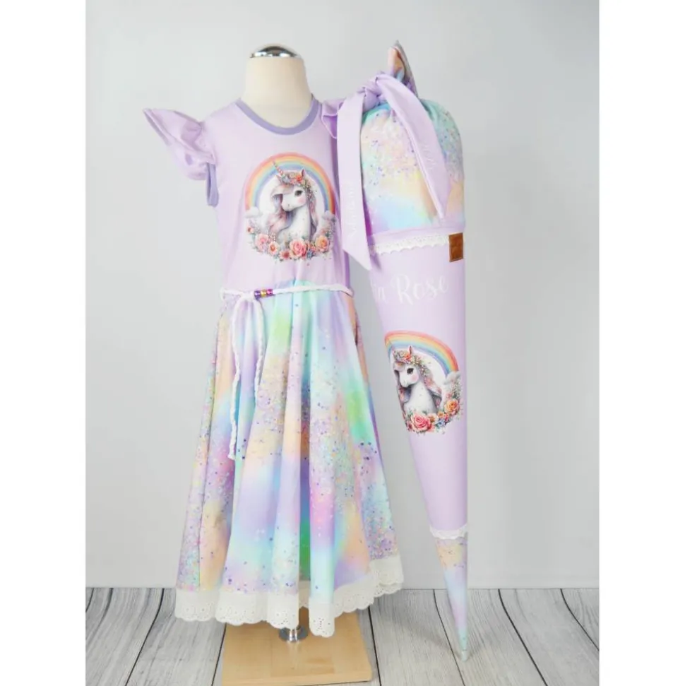 Schultüte Stoff Einhorn Regenbogen bunt Flieder 70cm 85cm   *personalisierbar und mit Kisseninlet