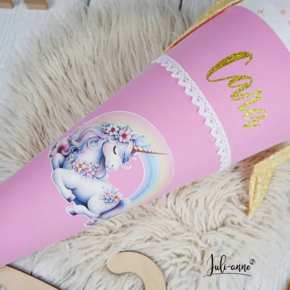 Schultüte Stoff Einhorn Rosa Gold 70cm 85cm   *personalisierbar und mit Kisseninlet