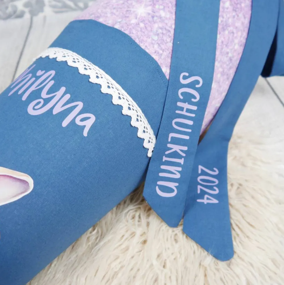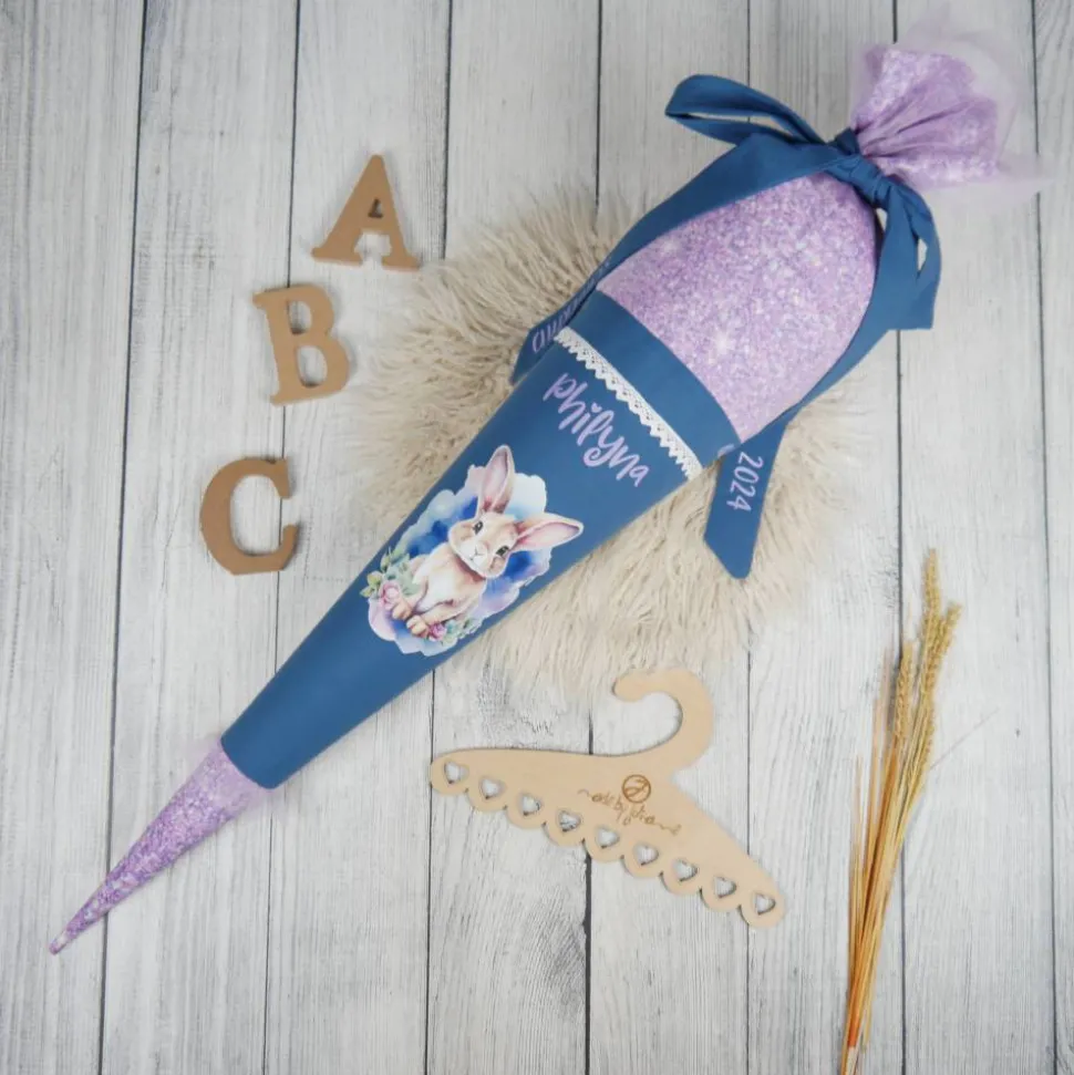 Schultüte Stoff Hase Rauchblau Flieder mit Tüll 70cm 85cm   *personalisierbar und mit Kisseninlet