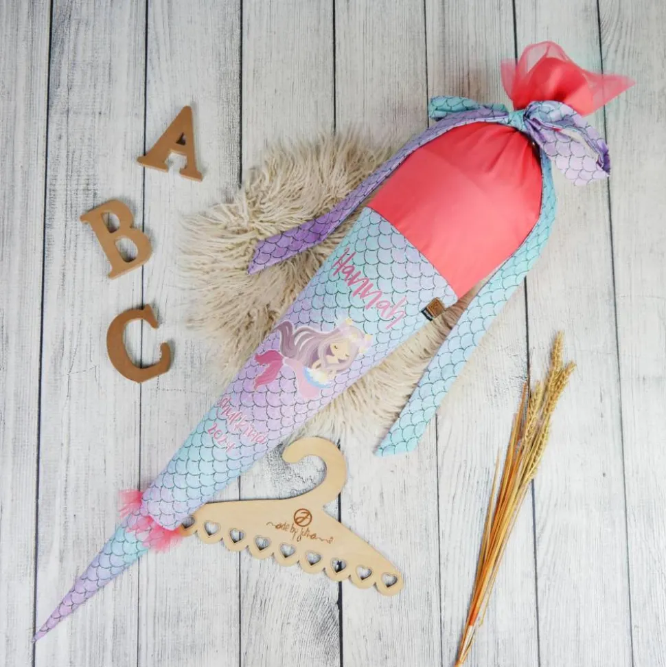 Schultüte Stoff Meerjungfrau mit Schuppen mit Tüll 70cm 85cm   *personalisierbar und mit Kisseninlet
