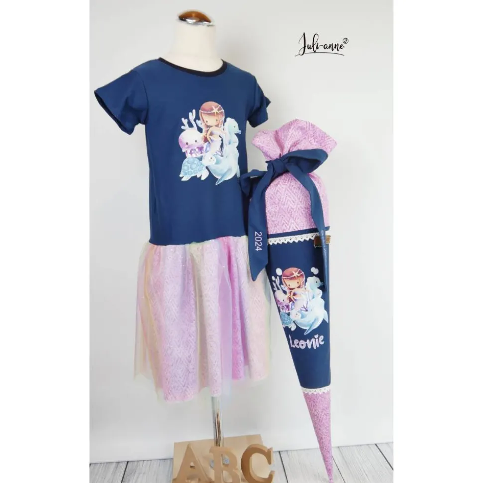 Schultüte Stoff Meerjungfrau Unterwasser Lila Blau 70cm 85cm   *personalisierbar und mit Kisseninlet