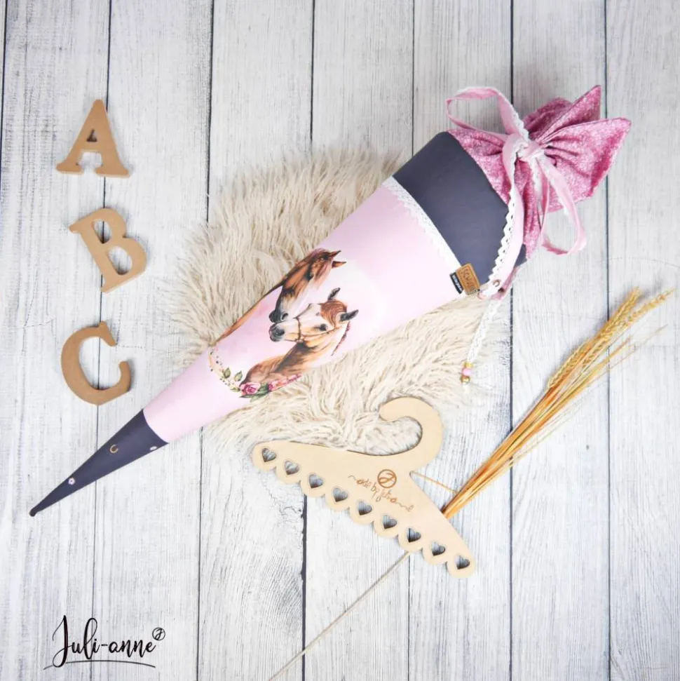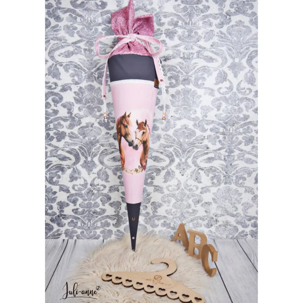 Schultüte Stoff PFERDE rosa Grau Mädchen  *personalisierbar und mit Kisseninlet
