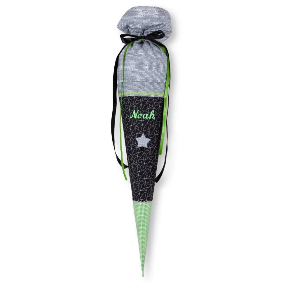 Die Schultüte aus Stoff wird befüllfertig mit Papprohling geliefert.