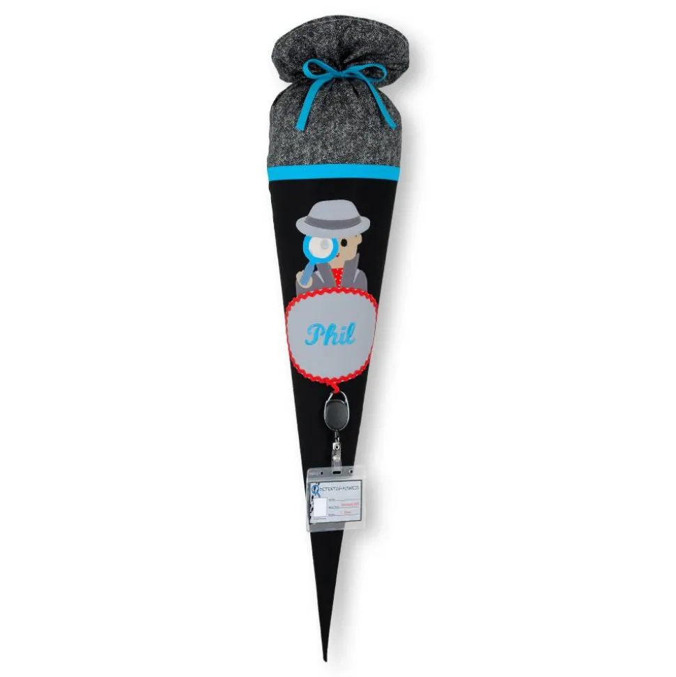 Schultüte, Stoffschultüte, Schultüte aus Stoff Motiv : Detektiv mit Detektivausweis