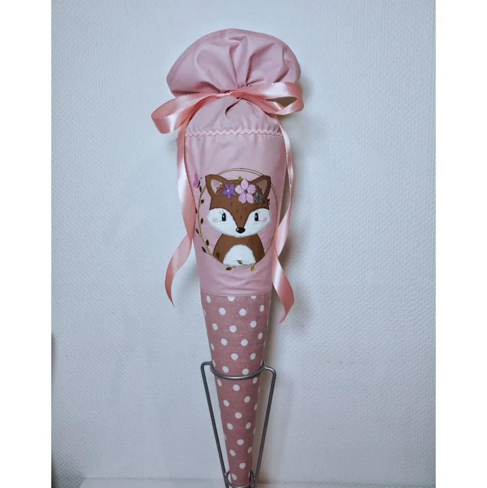Dies ist eine Schultüte für Mädchen mit einem gestickten Hasen mit Tüllrock.