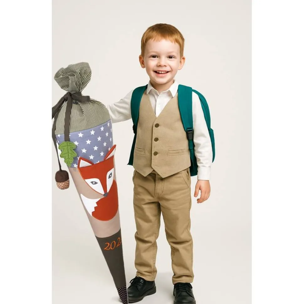 • 1 Stoffbezug aus 100 % Baumwolle, verstärkt mit Volumenvlies (100 % Polyester)• 1 Schultütenrohling aus fester Finnpappe ( Nachhaltig, PVC-frei, Recyclingfähig, Umweltfreundlich, kann im Altpapier entsorgt werden)(ab einer Größe von 65 cm mit angebrachter Holzspitze)