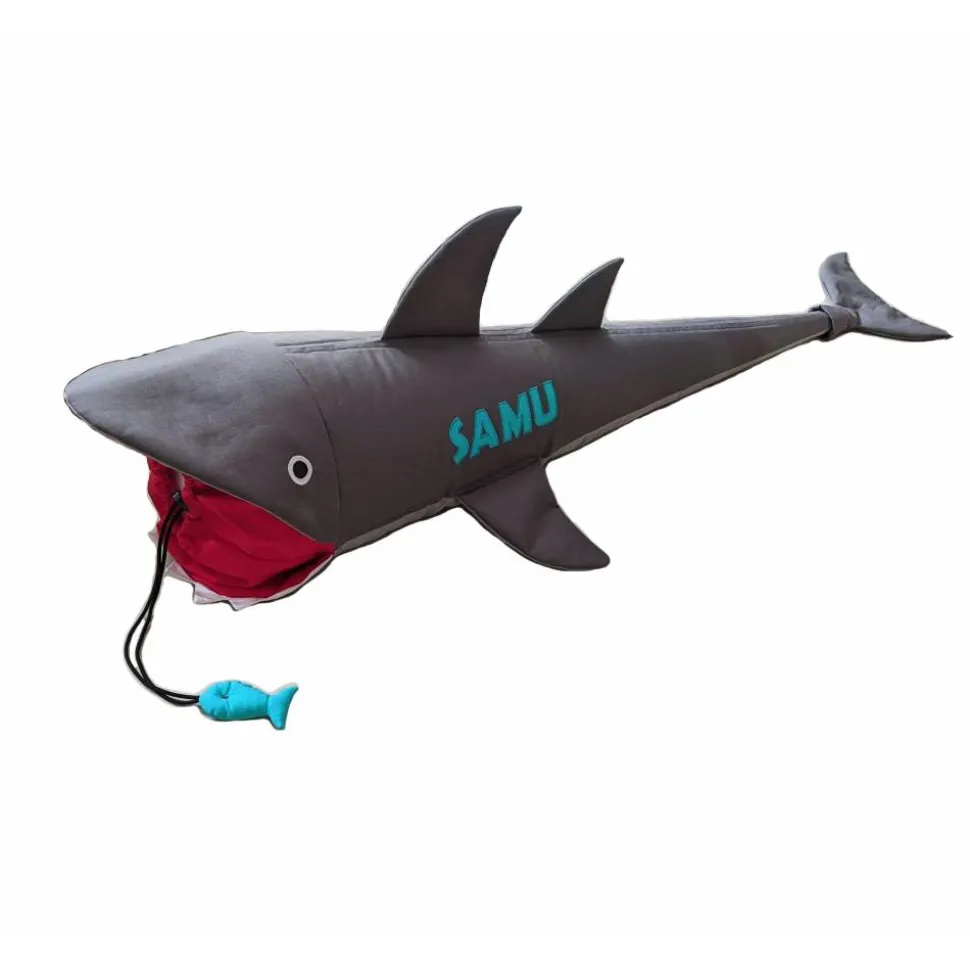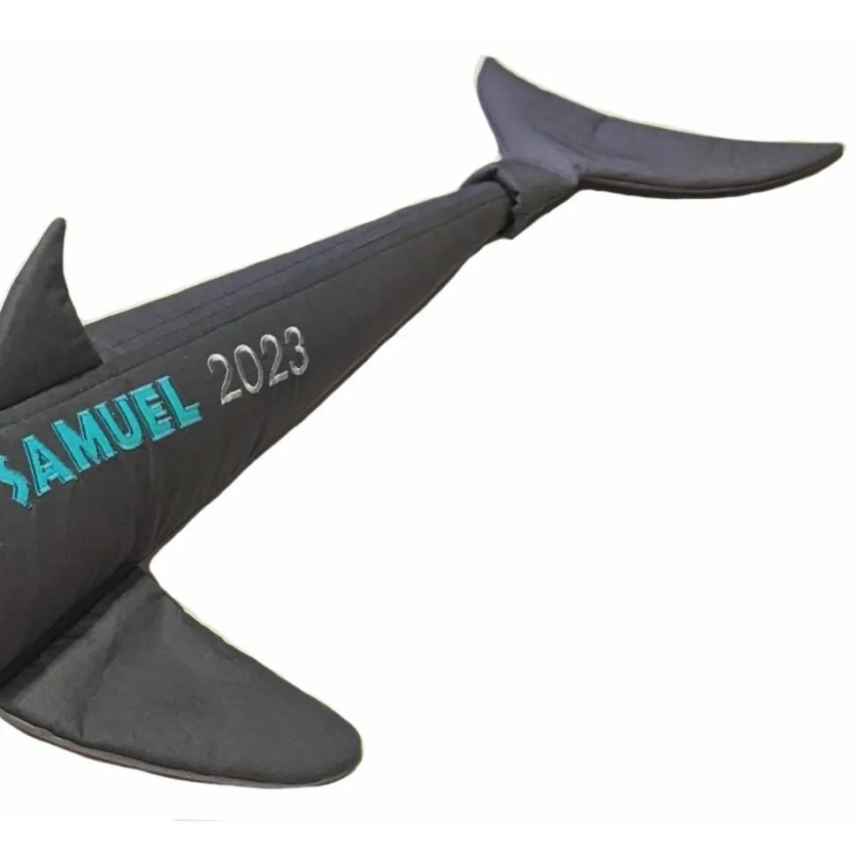 Hübsche Schultüte bestehend aus einer Stoffhülle inkl. Papprohling. Zusätzlich kann der Name Stoffbuchstaben (türkis) und ein Datum/Jahreszahl (Stickmaschine) aufgebracht werden. Die Schwanzflosse ist mit einem Klett angebracht.