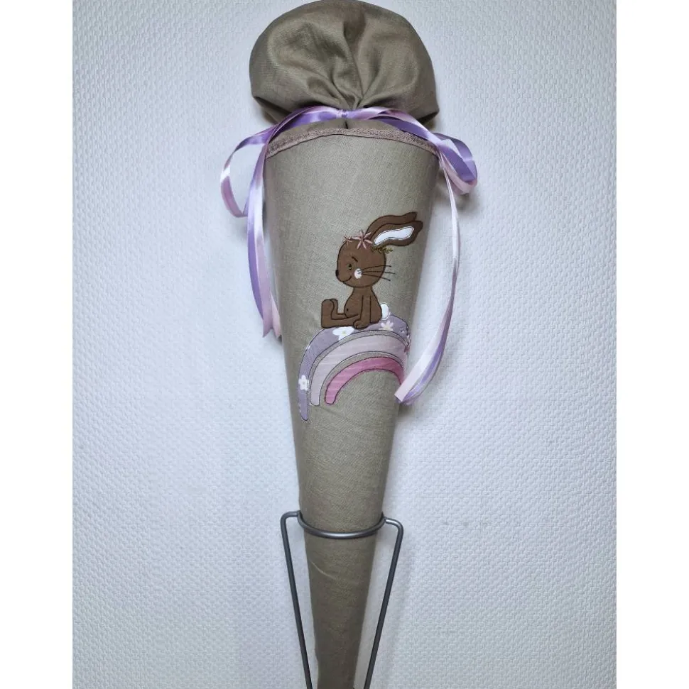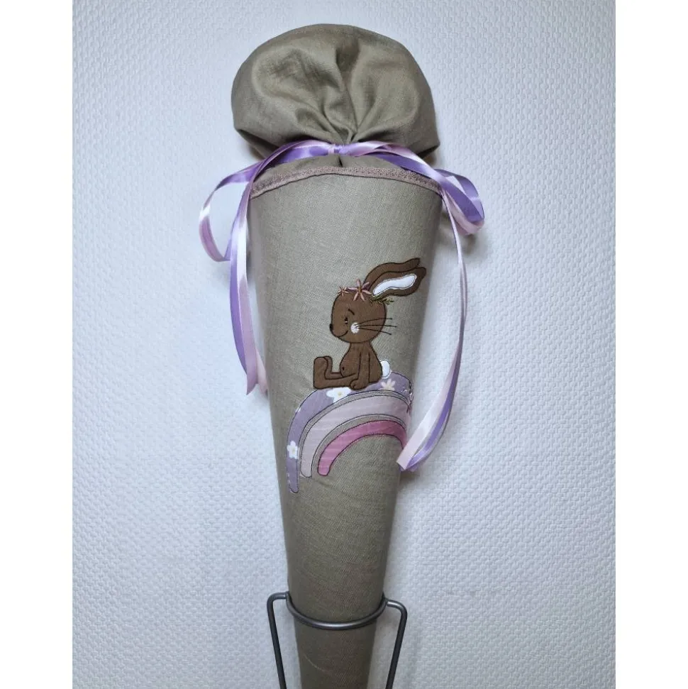 Dies ist eine Schultüte für alle Leinen- und Naturfarbenfreunde mit einer bezaubernden Stickerei. Der beigefarbene Stoff ist ein Leinenstoff.
