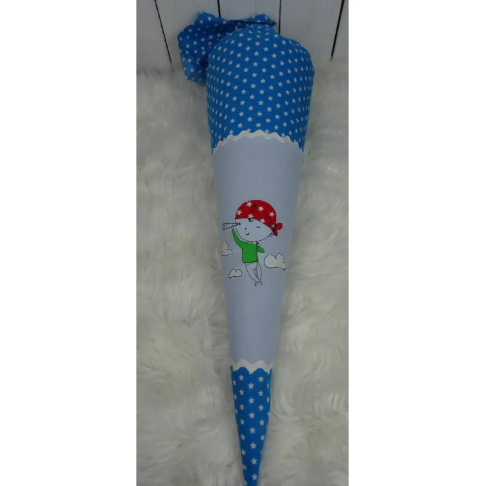 Die hier gezeigte Schultüte ist mit einem Piraten von Rock-Queen ( bestickt. Zur Auswahl stehen noch jede Menge andere Motive. Auch hiervon übermittele ich gerne Fotos.