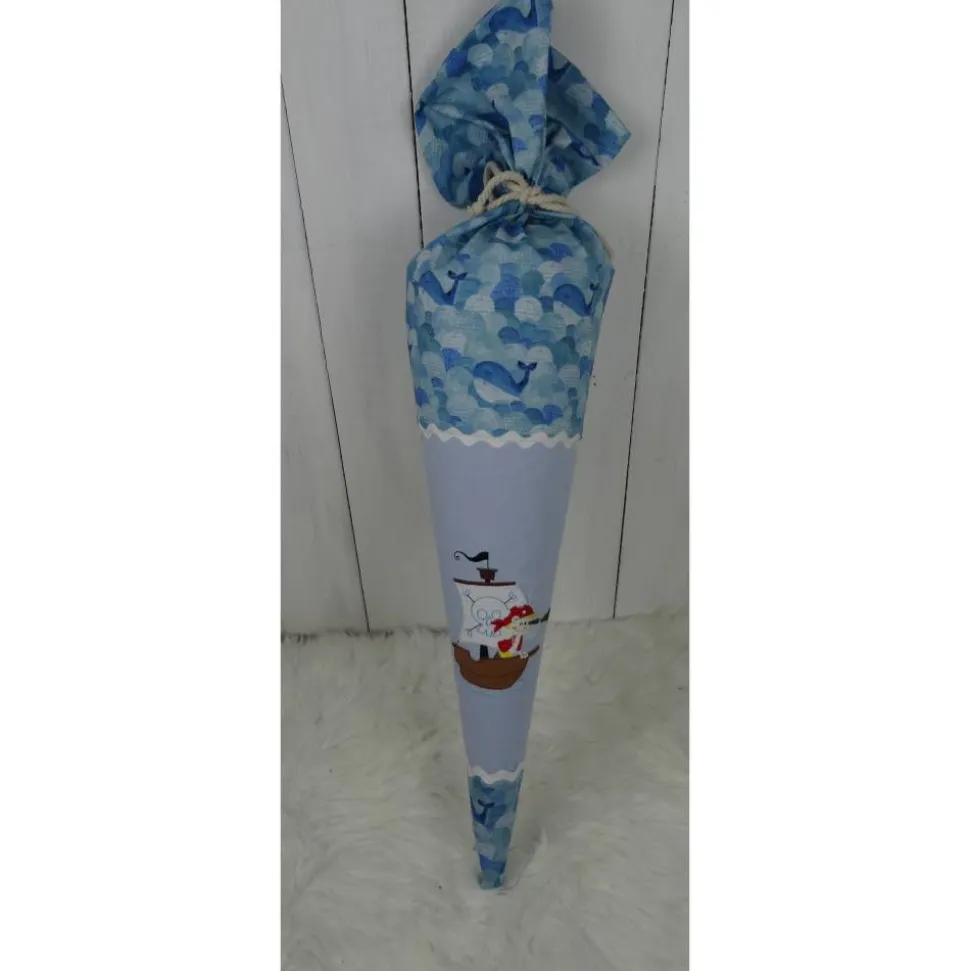 Die hier gezeigte Schultüte ist mit einem Piratenschiff von Rock-Queen ( bestickt. Zur Auswahl stehen noch jede Menge andere Motive. Auch hiervon übermittele ich gerne Fotos.