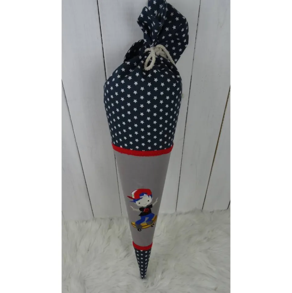 Lieferumfang: Schultüte aus Stoff, 1 Rohling aus Pappe, 1m passendes Band