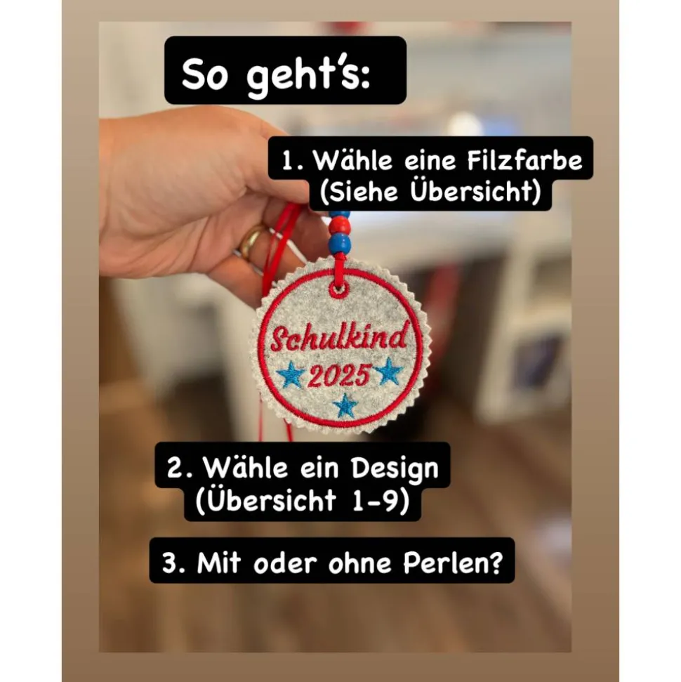 Hergestellt in liebevoller Handarbeit – vom Zuschnitt, über das Nähen und Sticken bis hin zur Verpackung – alles Made in Germany. Der Anhänger wird auf 3 mm Filz (100% Polyester) gestickt. Dies garantiert, dass der Anhänger äußerst formstabil und robust ist. Für das Besticken verwenden hochqualitatives Markenstickgarn. Haben sie besondere Wünsche? Dann schreiben sie uns gerne an.