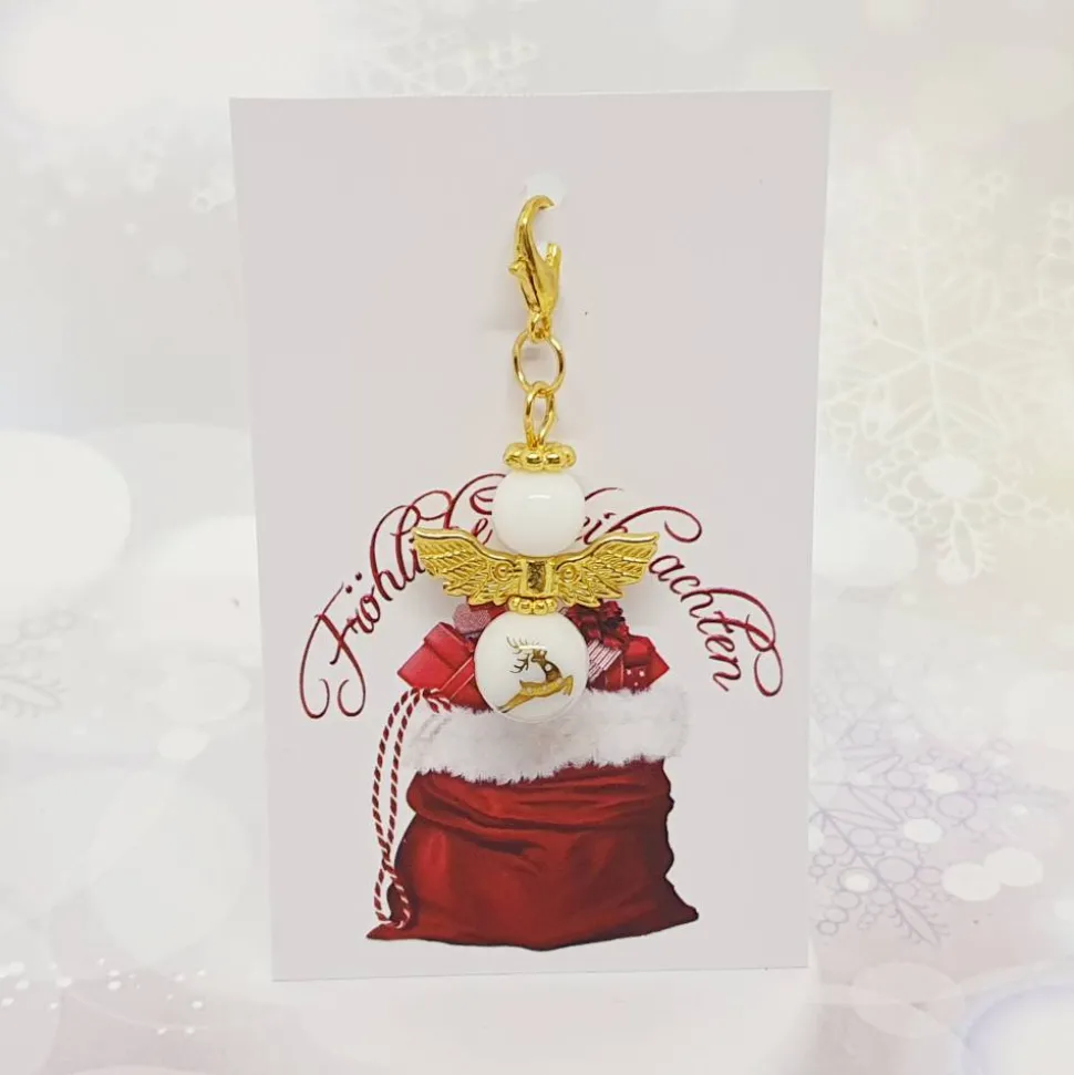 Jeder Engel ist mit einem Karabiner ausgestattet und hängt an einer hübschen Schmuckkarte. Die Größe beträgt ca. 2,5 cm ohne Karabiner.