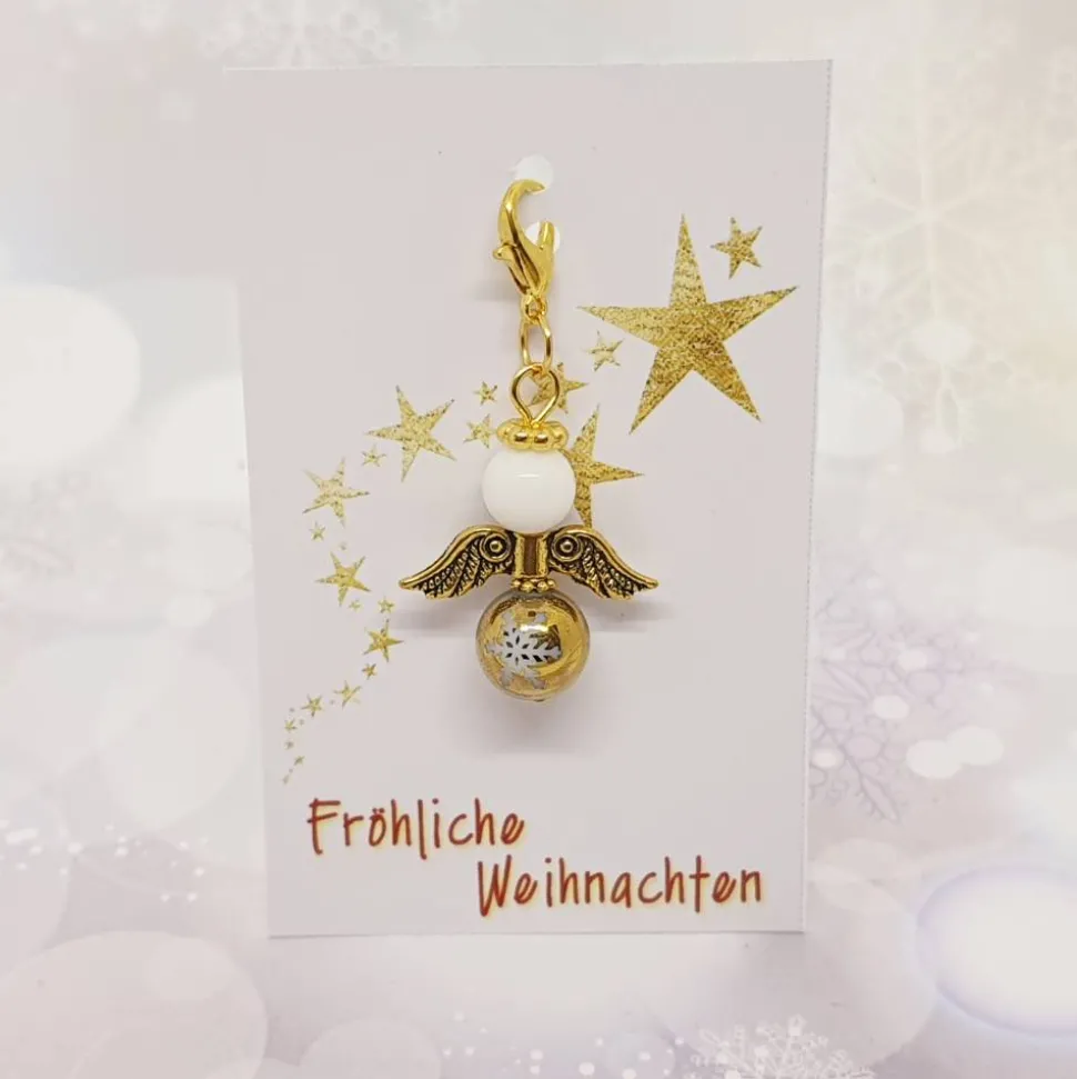 Entdecke den einzigartigen Schutzengel aus robusten Glasperlen mit goldfarbenen Flügeln – ein liebevolles Geschenk für Dich oder Deine Liebsten. Die goldfarben beschichtete Bauchperle trägt ein zartes Schneeflöckchen und macht jeden Engel zum besonderen Blickfang.